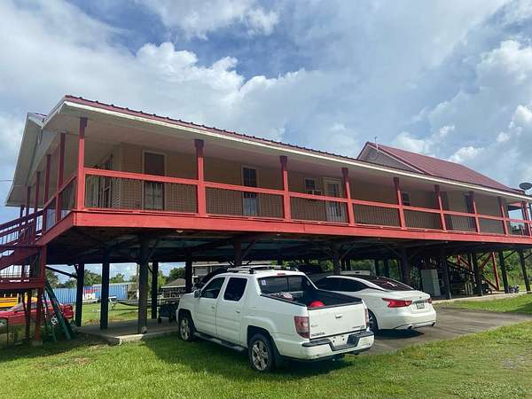 This cozy home comes with Lots and Lots of Land! It's nestled on almost 5 acres of property in Pointe-Aux-Chenes, and would make a perfect home or camp. With all the extra land, it would make the perfect camp ground in an area famous for it's fishing. The home is one bedroom; however, there is a bonus room off the dining area that could be converted into an extra bedroom. There is also a large add on room above the main house that is waiting on it's finishing touches. There's lots of covered porch area around the main house, and a huge covered cement area under the house for entertaining, seafood boils and to park. Working elevator. The view from the top deck over looking the beautiful property is a must see! All measurements to be verified by buyer.