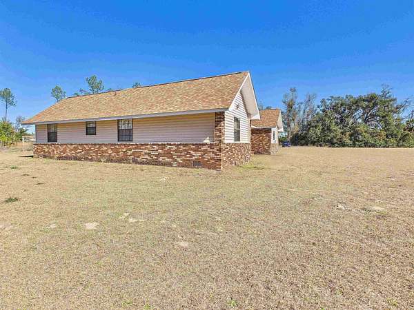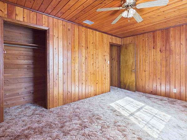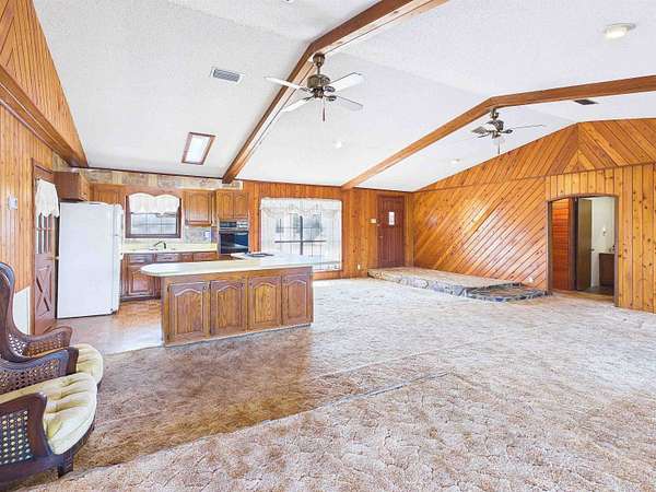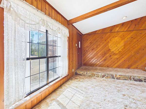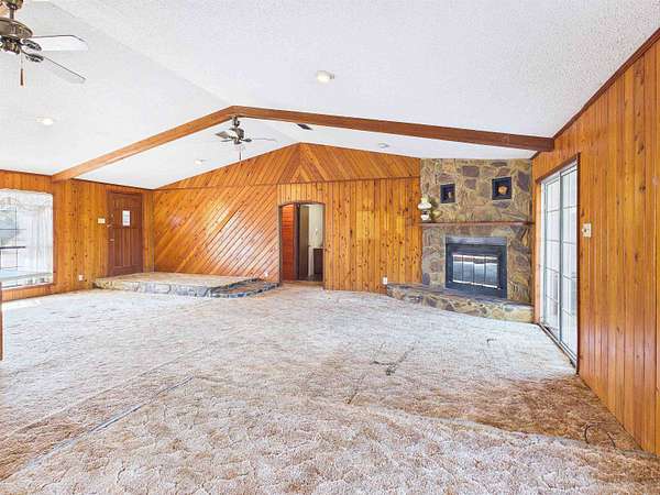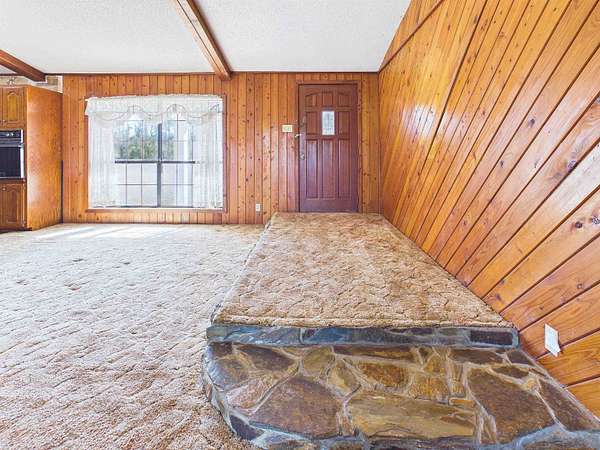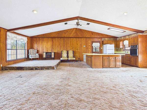 Nine acres that feel peaceful and private, yet still close enough to town that you're never far from what you need. Inside, the home opens up with an easy, open concept layout where the living, dining, and kitchen spaces flow together. Wood and stone details add warmth and character throughout, anchored by a stone surround fireplace that naturally becomes the heart of the home. This is the kind of space where evenings slow down, the fire is going, and the outside world feels far away. Natural light pours in through the sliding glass doors, leading out to the back patio and looking over the property. The large dug pond sits beyond the home, currently dry from the lack of rain, but full of potential and not located in a flood zone. With three bedrooms and two bathrooms, the layout is comfortable and functional. Big updates are already taken care of, including a new roof, new water heater, and a brand new HVAC system with warranty. Cosmetic updates could easily elevate this home and create instant equity, making it an opportunity as much as it is a place to live. Out here, you get space to breathe. Room to spread out, room to make it your own, and the feeling of being tucked away while still being near town. A setting that's quiet, open, and ready for its next chapter. Drone photos of property coming soon!
