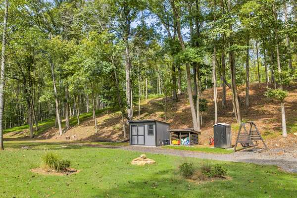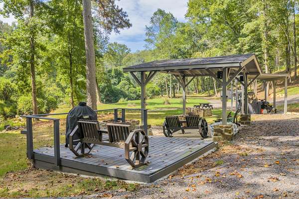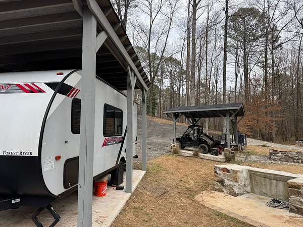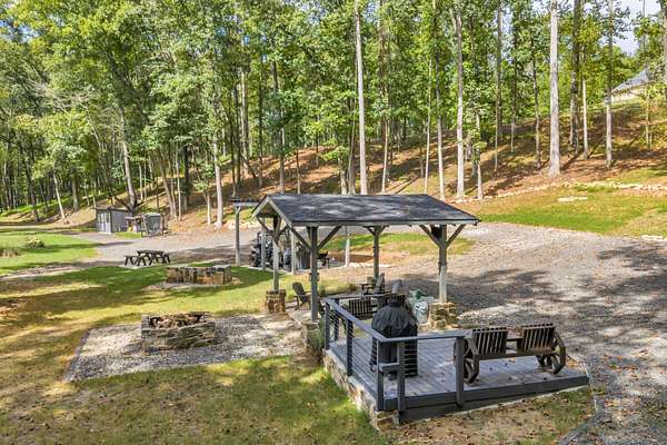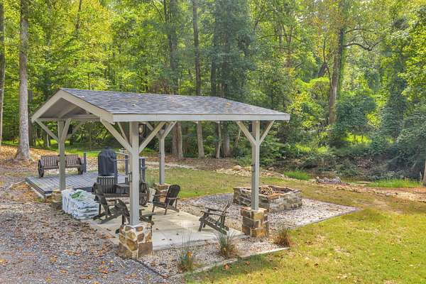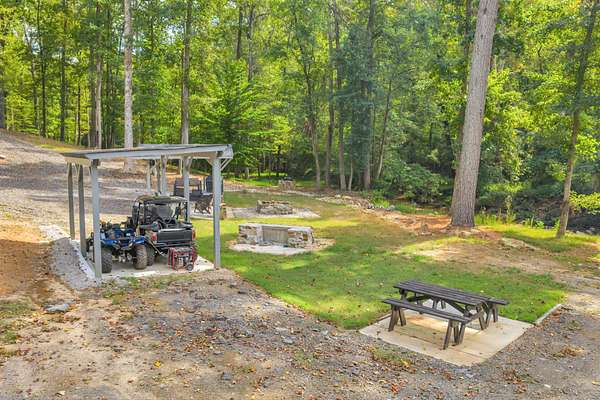Outdoor living takes center stage with a park-style setup that includes patios, a custom natural-stone fire pit, and covered decking with concrete pads perfectly suited for a utility camper. A workshop shed is also included, making this property as functional as it is scenic. Whether you’re looking for a private retreat, archery hunting grounds, or a unique residential opportunity, this tract delivers country life with city convenience. With its combination of natural features and development-ready infrastructure, it stands out as a rare investment or lifestyle property in the Stone Mountain area only minutes away from the state park.