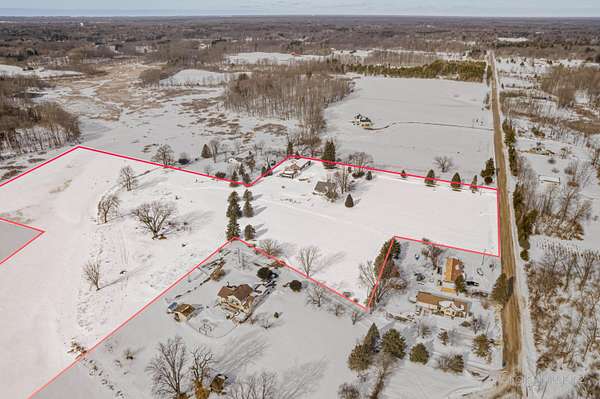 Welcome to 15425 132nd Ave. Nunica MI. A rare opportunity to own17 acres with approx. 600' of private frontage on Bruces Bayou offering direct access to Lake Michigan. The property features an updated 4 bed, 2 bath farmhouse with multiple large out buildings with workshop space. Ideal for storage, hobbies or future use. Underground power is already in place for a premier waterfront campsite. Acreage, waterfront, and access like this are seldom available. When properties like this come along, their value is quicly recognized.