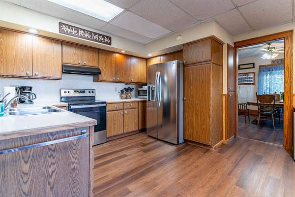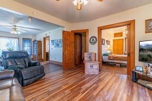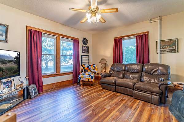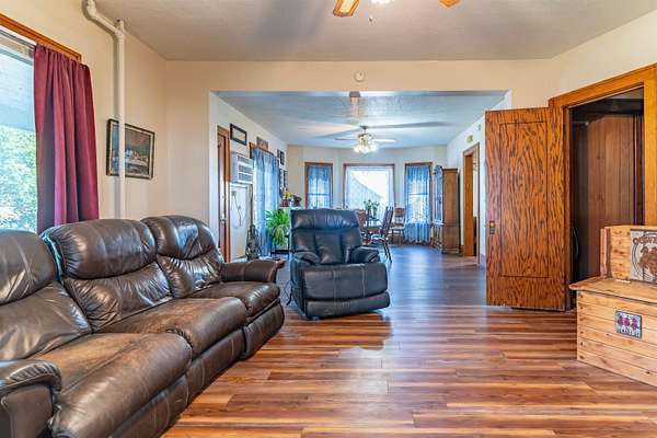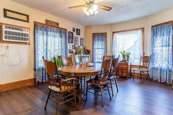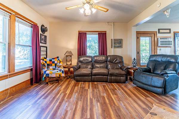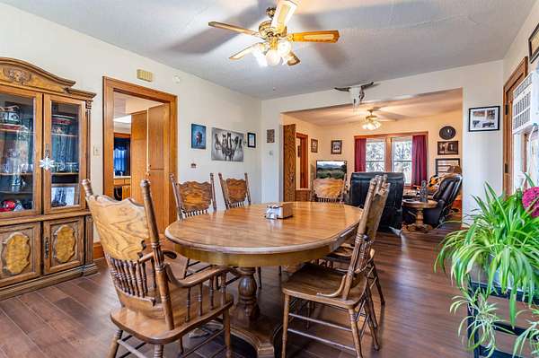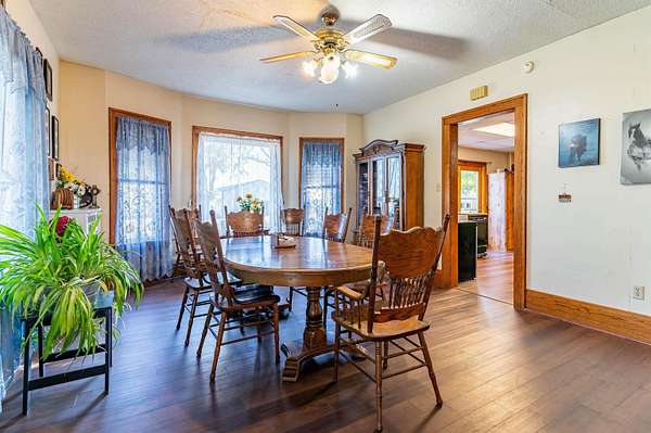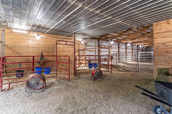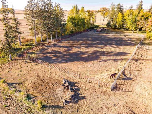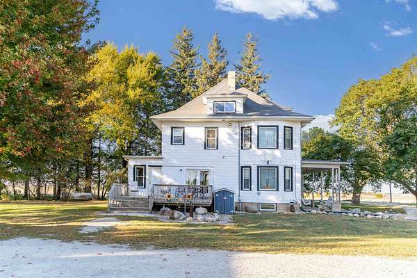 This acreage is move in ready as the seller has included items used for the farm. This Stately Two Story home built in 1915 with full basement sits on 5.19 acres. This home has received all the care and upgrades needed for the comforts of home. Nice big Dining and Living room. 2 larger bedrooms one upstairs, the other on main floor. Huge kitchen with mudroom and deck access enough room for another table. There is also a covered patio off the Dining/Living room area. Main floor laundry room with shelving just off the kitchen area. New vinyl flooring throughout the downstairs (mudroom, bathroom, kitchen, dining and living room). There are 2 bathrooms with new vinyl flooring and flooring (one upstairs and main level) There are 5 bedrooms with nice closets. Huge dressing room upstairs or could be an office or bedroom, just no closet. Original hardwood floors in rooms upstairs. Beautiful hard wood trim around all the doors, windows and baseboards throughout the house. Boiler Steam heat with the cast iron registers most have metal covers. The basement has cement block walls and cement floor with various rooms for storage. Access door to outside and inside from kitchen. The items included make this farm move in ready for anything you want to do. ? Washer/Dryer ? Dishwasher ? Stove ? Refrigerator ? Upright Freezer ? Chest Freezer ? Allis Chalmers Tractor with Loader ? 1947? Farmall H ? 52" zero turn Hustler Lawn Mower ? Blade ? 1998 4-Wheeler ? ALL Panels (pend, arena), stalls, feeders, cattle chutes ? Wall AC Unit ? Stand up AC Unit upstairs The furniture, TVs, beds, and tools in shed are all negotiable.