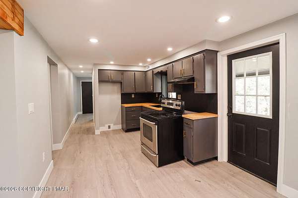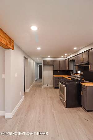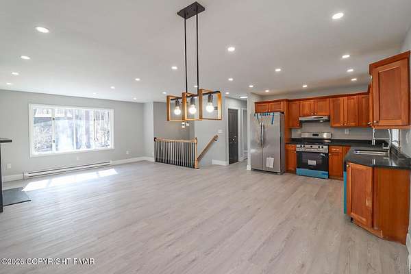Beautifully renovated bi-level home featuring two spacious bedrooms, and two full baths. This property offers a versatile layout with an in-law studio suite on the lower level, complete with a second kitchen-perfect for extended guests, or additional living space. Enjoy the warmth and charm of two fireplaces, adding comfort and character to both living areas. The main level boasts updated finishes throughout, providing a fresh and modern feel. An attached two-car garage offers convenient parking and extra storage. Relax on the small front patio area, and take advantage of the homes secluded setting, offering added privacy and a peaceful atmosphere.