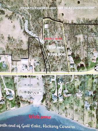 When you want to get away from it all then this is the investment you want to call home. Located at the North end of Gull Lake. Nestled back in the woods on 4 acres. Walk-out Ranch w/ 2,824 sq. ft. of living space. Location is a plus with the conservatory right behind you for peace of mind & Prairieville Township park to Gull Lake very near. 3 spacious bedrooms, 2.5 baths, lovely layout with sliders to your private deck. Living area offers fireplace & kitchen is open to dining area with larger windows. Nature & wildlife will surround you for every season. The lower level walk-out offers an abundance of space for gathering or private area for family member or visiting guests. 32X48 pole barn toward the back of the property for your yard toys or storage for your boat. Have the best of two worlds, acreage, peace of mind, and all sports Gull Lake for your water enjoyment. Many updates & a brand new roof. All appointments are required. Please do not go on property w/o a REALTOR .
