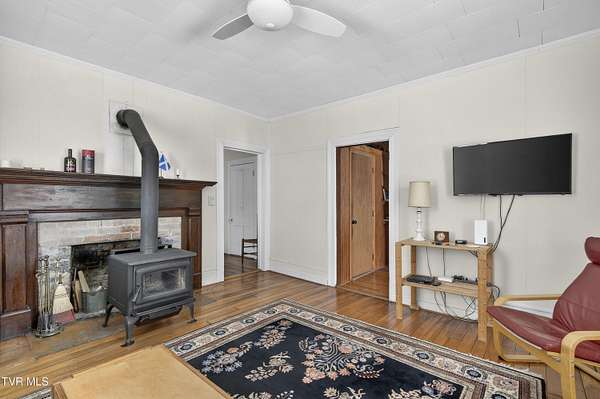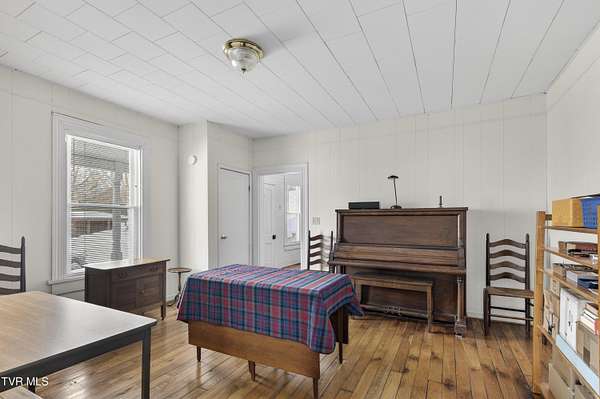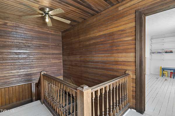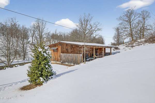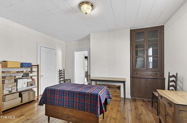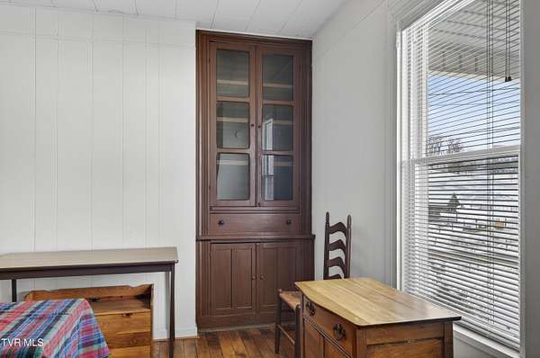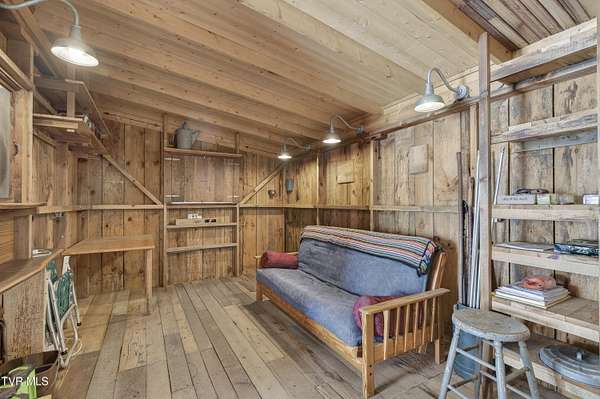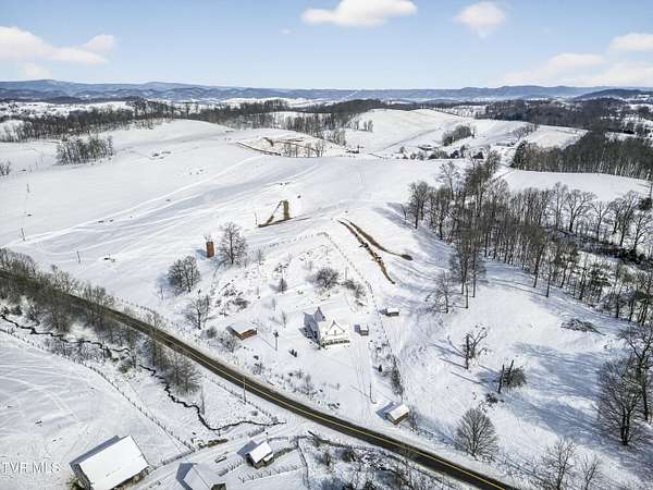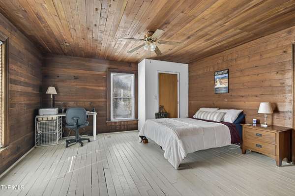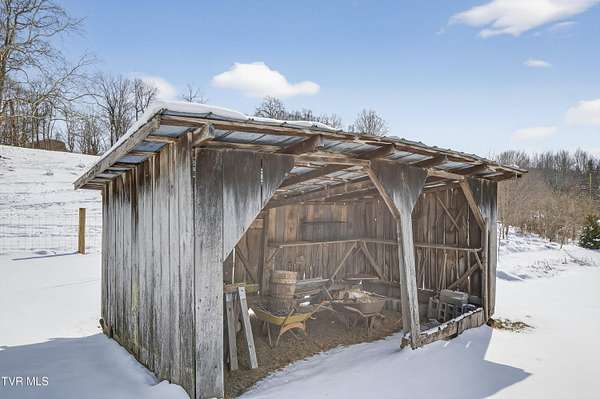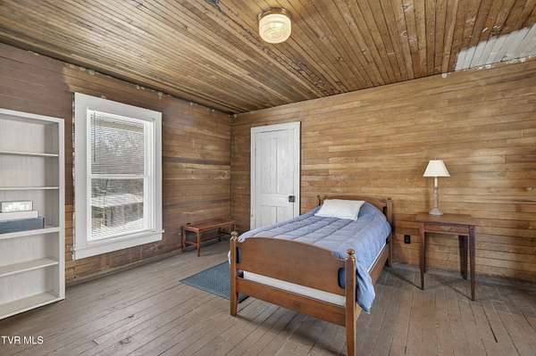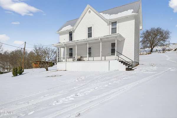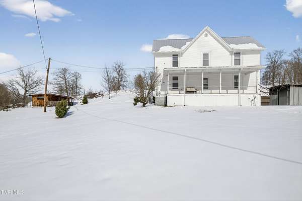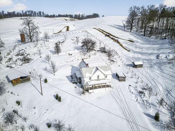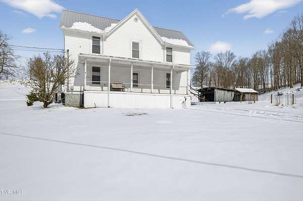 Nestled on two picturesque acres and surrounded by rolling farmland, this historic home offers timeless character in an idyllic, private setting. Lovingly stewarded by the current owners for almost two decades, this storied property is rich in original detail. Experience the quiet of country living from the front porch, which offers views of neighboring farmland, a wide variety of established trees, and the mountains beyond. As you enter the wood-clad foyer, you immediately feel the warmth of this character-rich property. Original historic details such as high ceilings, hardwood floors, shiplap walls and oversized moldings create a sense of warmth, space and authenticity throughout the home. The main level features a living room with a wood-burning fireplace, dining room featuring a built-in hutch, eat-in kitchen, bathroom with laundry, and bedroom. Upstairs you will find three bedrooms and an additional office space. Oversized windows drench the spacious rooms in natural light and provide pastoral views of surrounding nature. Outside, the land offers endless possibilities-tend a garden, plant an orchard, raise chickens, or simply enjoy the tranquil surroundings. A thoughtfully renovated barn provides room for outdoor entertaining or gardening equipment as well as an interior space that is a perfect writer's retreat, office, or potting area. Constructed of reclaimed lumber with quality craftsmanship and attention to detail, this barn is not your average shed! Well-planned electrical provides interior wall sconces as well as ample exterior lighting and receptacles for any need. An additional one-car garage was lovingly outfitted with shelves and organization for a purposeful workshop, ideal for carpentry or projects! Situated on a quiet, country road, this home is in an ideal location for nature lovers! Just a 15-minute drive from downtown Damascus, the property is convenient to the Virginia Creeper Trail, the Appalachian Trail, and thousands of acres of National Forest. Enjoy day hikes in the nearby Hungry Mother State Park, Grayson Highlands State Park, Beartree Recreation Area, or the Channels Nature Preserve. With thousands of miles of hiking tails, South Holston Lake, and abundant stocked trout streams, this corner of Southwest Virginia is a mecca for outdoor enthusiasts. If your hobbies lean more indoors-not to worry-nearby historic Abingdon is home to a thriving small-town arts and food scene! This special property captures the essence of classic farmhouse living. The private and serene setting provides a rare opportunity for those seeking history and space to grow. Enjoy quiet mornings from the porches, walks to the top of the property to appreciate the view, or cozy evenings by the wood-burning stove. There is nothing cookie-cutter about this soulful home!