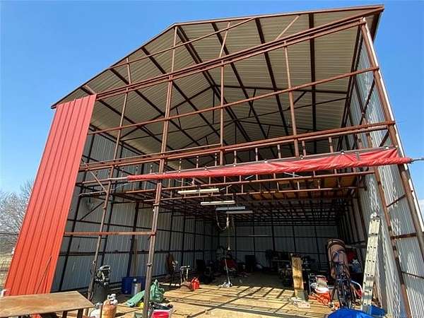 - 2 story 30 ft X 50 ft metal building with a concrete slab, lighting, and wood burning for heat source.