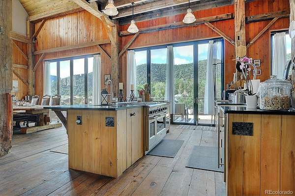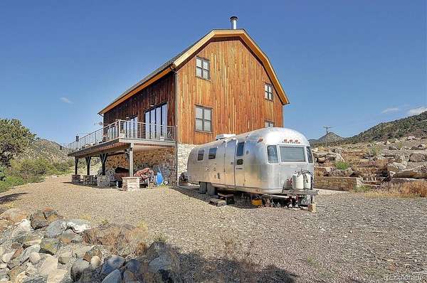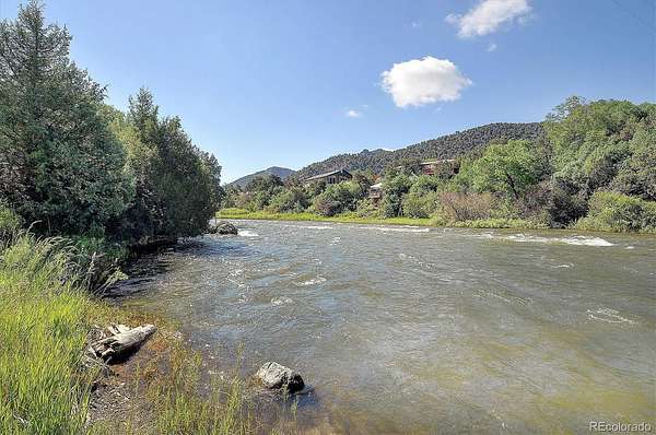 An 1870's restored barn on 1,000 feet of Arkansas River frontage. This unique real estate opportunity is a combined feature of architecture, luxury, & rustic mountain comfort. The gated property is a spacious 8.72 acres that drops you down to the home strategically built into the side of the hill. Traditional "banked barn" designs like this were classically 2 story structures utilized for efficient agriculture with entries on separate levels. Converting the historic lumber & frame into a high end residence worked perfectly with the layout of the lot & proximity to the river. When you walk into the front door, you immediately understand the craftsmanship & care that went into the original construction, then into the restoration onto this site. The beams & posts are beautifully aged dense oak, the entire floor is covered in wide plank Douglas Fir, & every inch is custom or salvaged. Most of the main living area is open with only a few posts for support. An impressive 33 foot tall stone fireplace is the star of the interior. There are large windows around the room & an entire wall of massive doors leading to the 600sqft cedar deck that overlooks the river. A bathroom on the main level has a walk in shower & double vanity. Another bath is located in the loft bedroom upstairs. It is a dreamy open concept space with a soaking claw foot tub & views of the surrounding mountains. Another private bedroom is downstairs by the attached oversized garage. Entertaining in this spot is easy. The kitchen includes GE Monogram appliances but is all low-profile to not disturb the atmosphere of the open room. This property is expandable into the adjacent 4.54 acres downstream. This parcel has beautiful access to a permitted boat ramp & hot springs that cascade into the river. An exceptional opportunity to own one of the finest homes in this part of Colorado away from crowds, but close to skiing, hiking, biking, dining & amenities.