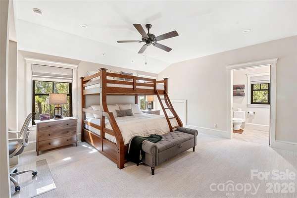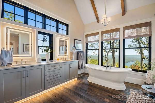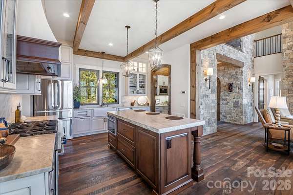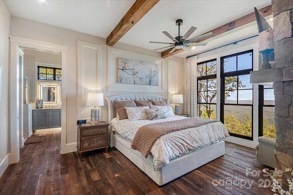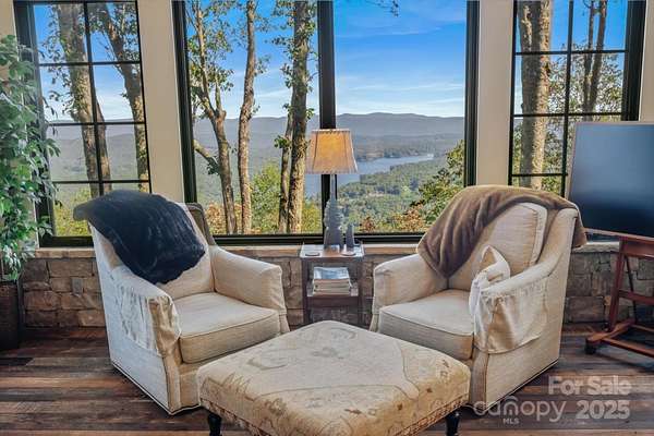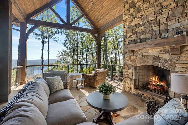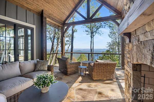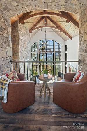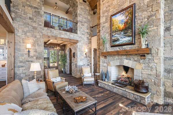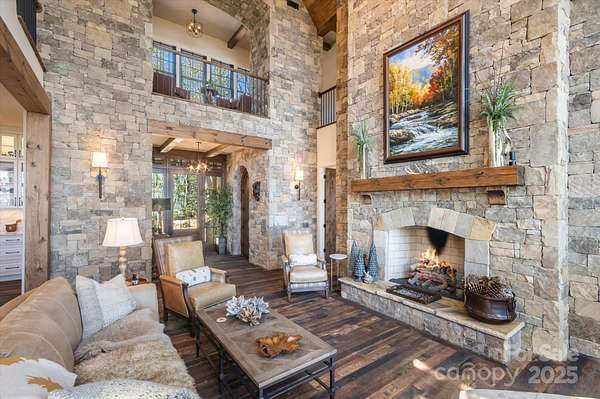 This nicely furnished custom home in the Meadow Ridge section of Lake Toxaway Estates sits on a double lot totaling over 5 acres and is turn key, waiting on you. Watch gorgeous sun rises to the east while also overlooking incredible mountain and lake views. With special attention to design, this one of a kind home features reclaimed wood floors with radiant heat, stacked stone fireplaces and accent walls, main level living and so much more. The exquisite design elements including arched beams and doors, make this home both cozy and inviting. The primary suite boasts a stone fireplace and large walk in closet. Each bedroom has an en- suite bath. Enjoy the views from nearly every room in the house. With a large porch complete with its own fire place, you can relax and take in the vista. The lot is nicely landscaped and also includes trails for you to enjoy. It is also convenient to the playground and Meadow Ridge Pavilion. This home was completed in 2025 and is perfect for the discriminating buyer looking for that special place to call home. Property has a whole house 26KWgenerator with an automatic transfer switch and a 10 year extended warranty.