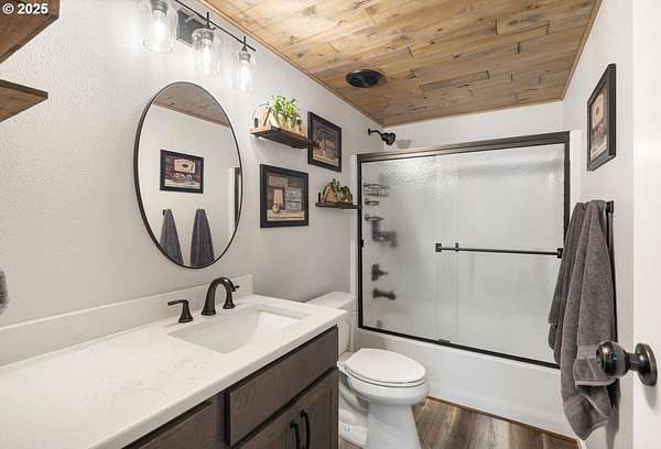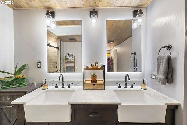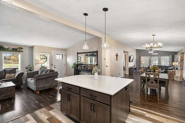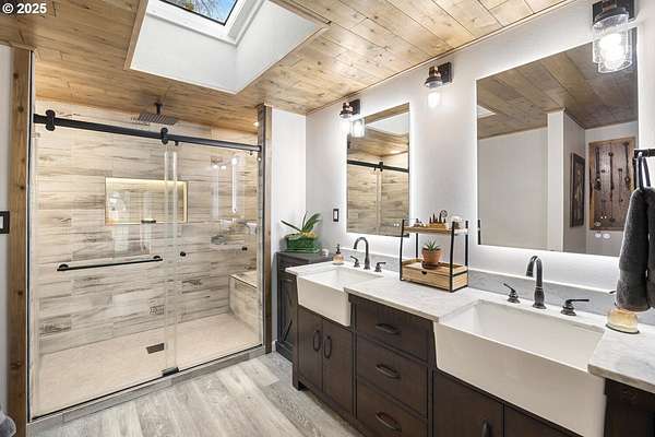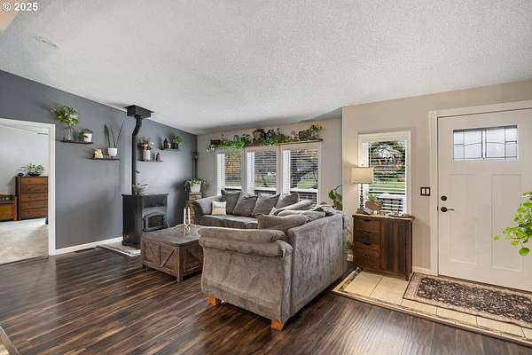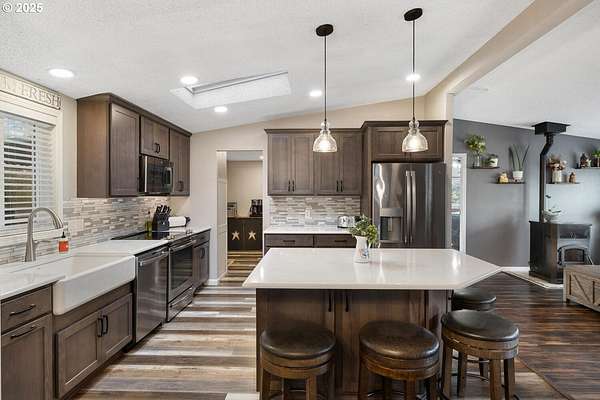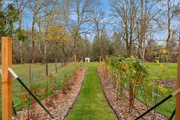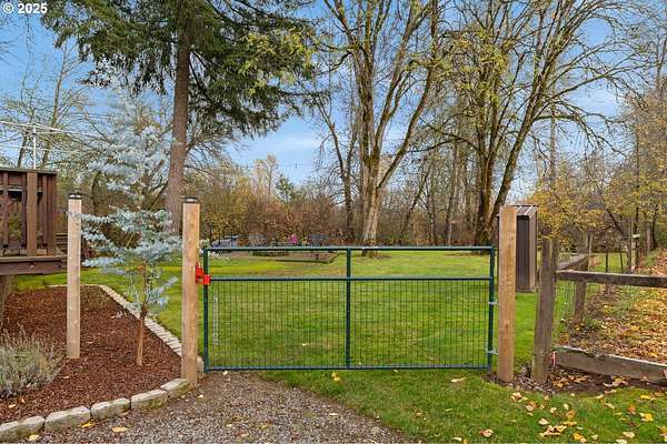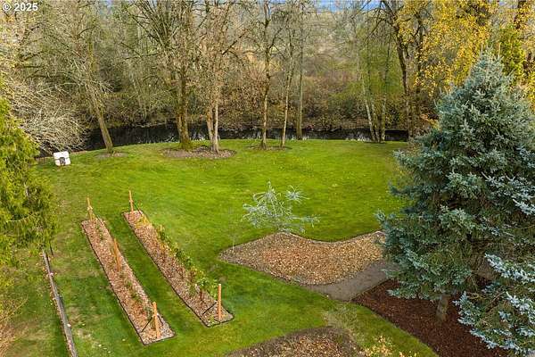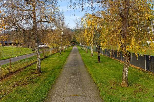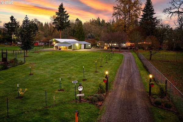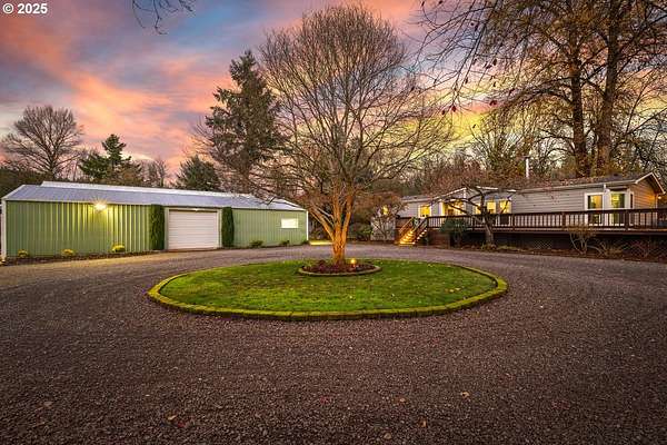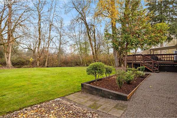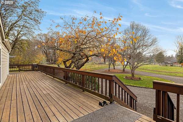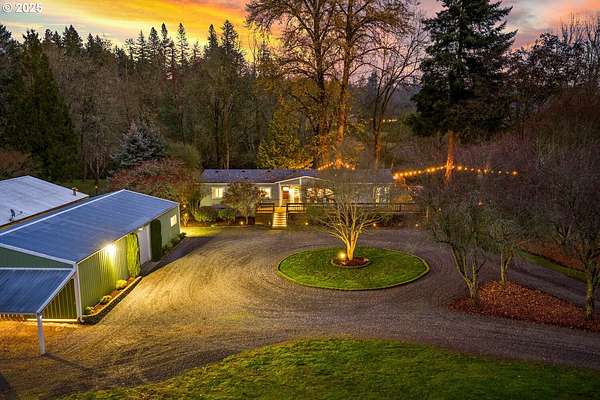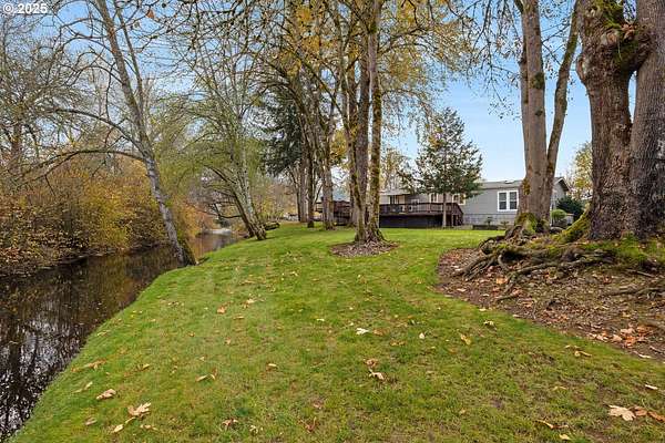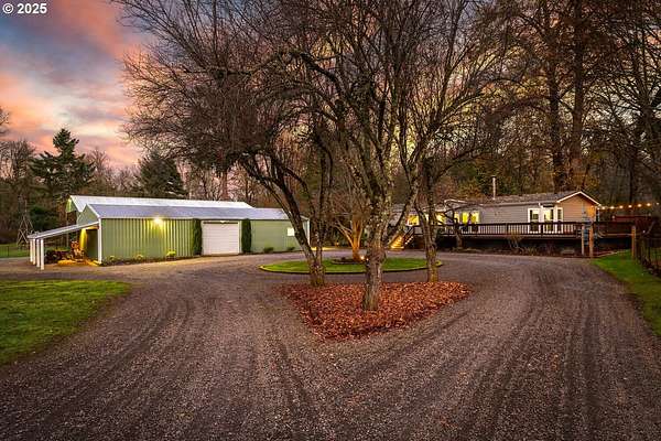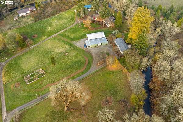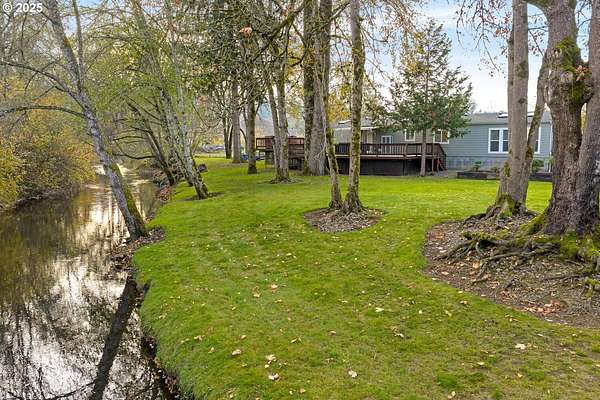 Welcome to your own private retreat tucked away down a long driveway on 1.96 acres with Milk Creek frontage! 30x60 fully insulated shop with roll up door, concrete floor, electrical & attached storage room. 24x60 covered parking for RV's, boats and toys. Gardener's paradise with multiple garden areas, an array of fruit trees all thoughtfully placed for easy maintenance and enjoyment. Entertain on the massive wrap around deck or relax in the hot tub with the serenity of the creek as your very own backdrop. Quality updates throughout the home. Open concept floor plan with lots of natural light. 3 bedrooms, 2 bathrooms, vaulted living room, dining space & family room with cozy pellet stove. Kitchen features hickory cabinets, Quartz counters & island with eating bar. Newer interior paint & flooring throughout. Enjoy the completely remodeled primary bath with walk-in rain shower, dual sinks & high-end finishes. Large laundry room with plenty of storage & new washer & dryer to stay. This is a one of a kind property surrounded by mature landscaping, well thought out gardening spaces and the beauty of Milk Creek. This property includes 2 tax lots for potential future development & an LLC already in place for your own small business possibilities! Pride of ownership shines here!