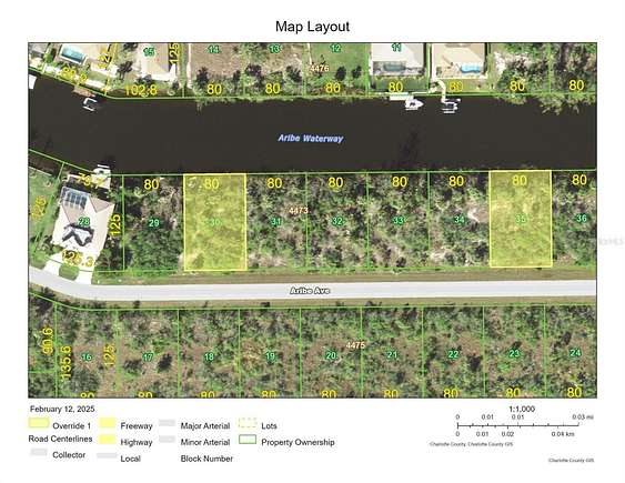 15448 Aribe Ave = lot 30 and 15488 Aribe Ave = lot 35. Each lot is 80 x 125 in size and overlook the Aribe Waterway. Water, sewer and Electric are in place making these a prime location to build. Only one bridge out to open water giving you quick access to the Charlotte Harbor & Gulf of Mexico. The community offers multiple parks, sidewalks, playground, public boat ramp and over 50 miles of navigable waterways for your boating enjoyment. Lots can be purchased together or separately. Buy as an investment or Build your Dream Home, but either way Secure Your Piece of Paradise Today...(taxes reflect two properties).