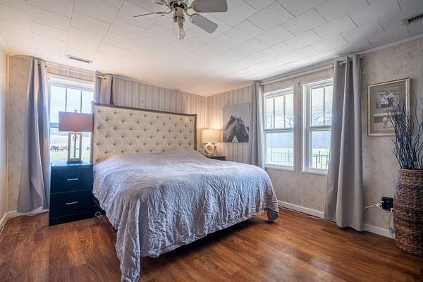 The land is largely usable, fully fenced and cross-fenced, featuring rolling terrain, a scenic pond, fertile ground, and expansive views. Automatic frost-free waterers throughout (see Land ID map) make this a turnkey rotational grazing and equestrian property, equally well suited for cattle, horses, a working homestead, or any combination you can envision. The mix of open pasture and mature wooded acreage also creates excellent habitat for wildlife, enhancing recreational and hunting appeal.