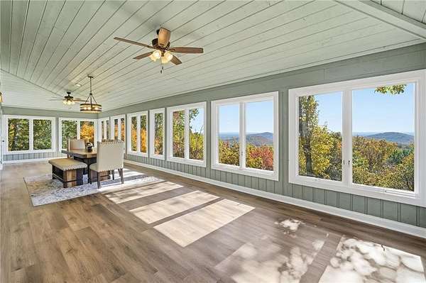This furnished luxury home is one of the BEST PANORAMIC VIEWS IN BIG CANOE! Mountains, Lake Petit and even a partial Atlanta skyline! This is a magnificent home with a stunning chef's kitchen, a private owner's suite, a huge sunroom, a party space with hot tub and multiple decks, a private game room and so much more. You can live in luxury without the hassle of home ownership with this rare gem of a home! You will enjoy a private gate as you enter the driveway, a 2 car garage and plenty of space for flower gardening in a hidden secret garden space!!!! This luxury lease is offering the privacy, views and lifestyle you have been waiting for with golf, tennis, pickleball, boating, fishing, clubhouse, trails, dog parks, live music events and so much more! Available now, small dog allowed. Interior is being freshly painted - updated photos coming soon. Ask for details!