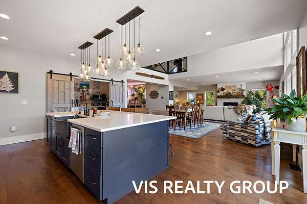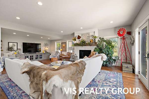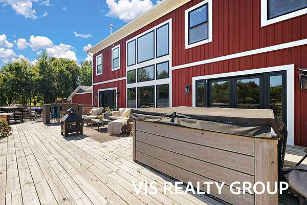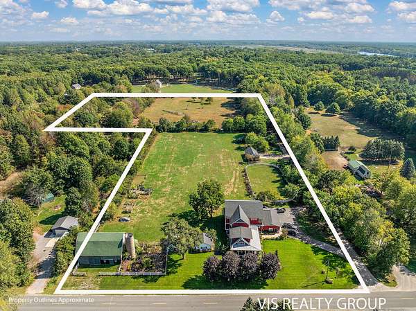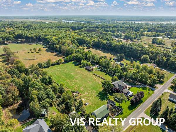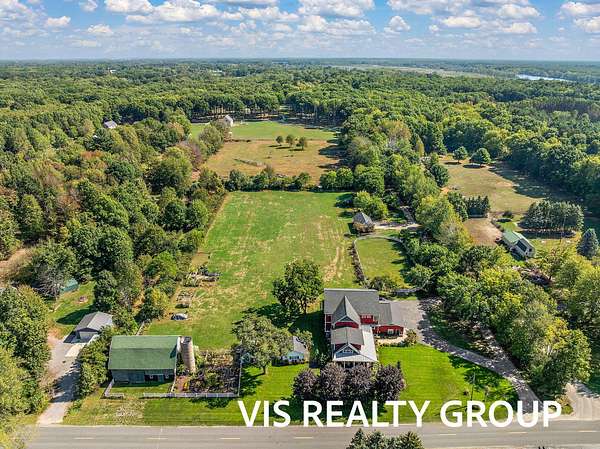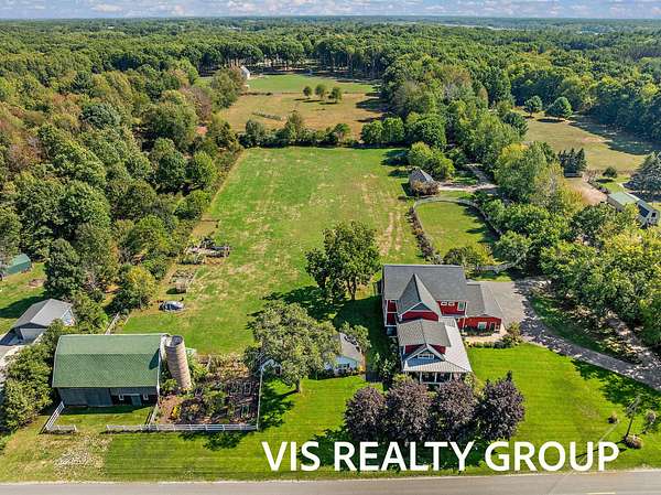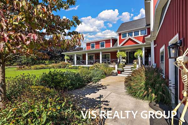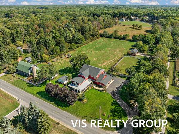 Wind up the driveway and wind down your life! A rare opportunity awaits at this charming 1940s farmhouse that was completely renovated and expanded in 2018. This property is nestled on 14 private acres with multiple outbuildings. Just 1.5 miles from Spring Lake High School and Jeffers Elementary, this incredible estate offers the perfect blend of country living and convenience.The main residence boasts over 5,300 square feet of beautifully finished living space, while a separate 1,500+ sq ft guest cottage-ideal for in-laws, guests, or rental income-adds versatility to the property. From the moment you step onto the wraparound front porch, you'll feel the peaceful embrace of this private retreat. Inside, a welcoming foyer leads you into a light-filled home with floor-to-ceiling windows, offering breathtaking views of the surrounding landscape. The stunning kitchen serves as the heart of the home, featuring an oversized island, a spacious pantry, and open two-story design that brings the outdoors in. The main floor includes a large bedroom and full bath, plus an expansive bonus roomperfect for a home gym, second living room, or dream craft space. Step out onto the large back deck to relax or entertain while enjoying nature, then cozy up by the fire in the spacious living room. Upstairs, the primary suite is a true sanctuary, complete with fireplace, serene views, a spa-like bath with soaking tub and tiled shower, and a large walk-in closet. Two additional en-suites, a dedicated laundry room, and a generous home office round out the upper level. Custom built with attention to detail, this modern farmhouse is filled with character throughout. Outside, the possibilities are endlesswhether you're interested in gardening, raising chickens, or need space for horses. The property includes, a large historic barn (mid-1900s), charming she-shed, third multi-use outbuilding, with potential to split the property (buyer to verify) The guest cottage, located off a private drive, offers a full kitchen, bath, bedroom, and large living spaceideal for multigenerational living or rental opportunities. This one-of-a-kind estate has everything you need to create lasting memories. Don't miss your chance to own this stunning retreat that truly checks all the boxes!