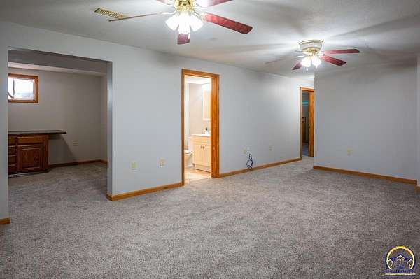 Welcome to this delightful 4 bedroom, 3 bathroom home on 4 acres! It's perfectly situated just off a paved road, right outside of Overbrook. On the main level the home features 3 bedrooms and 2 of the bathrooms. The primary bedroom has an on suite-bathroom and 2 closets, one is a walk-in. The kitchen and dining room host backyard views and sunsets. Rounding off the main level are a living room and first floor laundry room. The fully finished basement is a versatile space that offers a variety of features to accommodate different needs. It has a large family room, a non conforming 4th bedroom, a spacious full bath. It also includes two additional spaces that can be customized to suit your lifestyle, they would easily work for an office, hobby room, play room or home gym. These flexible spaces make the basement an ideal area for adapting to your changing needs over time. The home has an attached 1.5 garage, and large back deck to enjoy your outdoor lifestyle. Three of the 4 acres are fenced and 2 outbuildings for additional hobbies or storage.