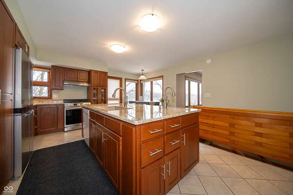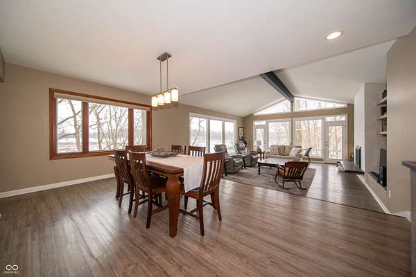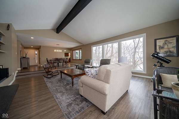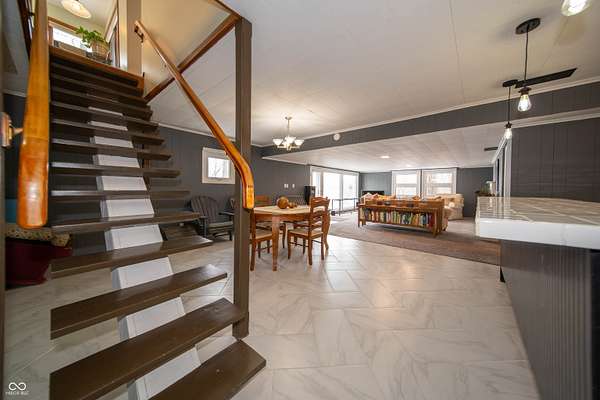 Hold onto your hats, folks, because this wonderful updated Ranch with walkout basement in beautiful Blackford County, is about to redefine your idea of "home sweet home"! Prepare to be wowed by the great room, a space so inviting, it practically begs you to kick off your shoes and unwind; imagine cozy evenings spent basking in the warm glow of the fireplace, while your eyes dance across the vaulted ceiling, supported by rustic beamed accents, and your favorite books find their rightful place upon the built-in shelves, all framed by the unique charm with plenty of natural light gracing every square inch of of this home. The kitchen is ready for you to unleash your inner chef, with a large kitchen island providing ample space for culinary creations