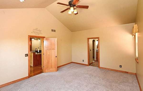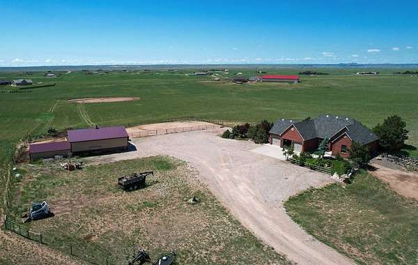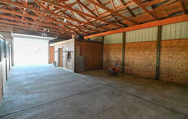 Set on 39.86± deeded acres, this exceptional property showcases a custom 2008 brick home offering five bedrooms and three and a half bathrooms, enriched with upgrades throughout. The main level features an inviting open floor plan, highlighted by cathedral ceilings, a gas fireplace with custom rockwork, and live edge stone countertops in both the kitchen and bathrooms. The spacious basement-approximately 85% finished-offers nine foot ceilings, a built in entertainment area with surround sound, and a wet bar topped with granite, creating an ideal space for hosting and relaxation. The home also includes fully tiled steam showers and a jetted tub in the master suite, along with a three car attached garage, an expansive composite deck, and mature landscaping that enhances the outdoor living experience. Designed with horse enthusiasts in mind, the property features a 36x48 horse barn with a 10x48 lean to, a finished tack room, four box stalls, automatic waterers, and a concrete alley with dedicated feed storage. Additional improvements include pipe corrals, a 10x30 loafing shed, and full perimeter fencing for grazing.