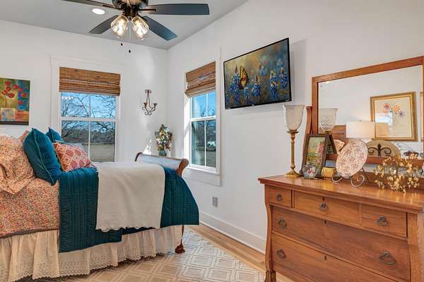 Set on nearly 12 acres of East Texas countryside outside Gilmer, this one-of-a-kind event center blends rustic charm with modern comfort. The property includes a quaint chapel, a tranquil pond, and a charming cabin, creating multiple picturesque settings for ceremonies, photos, and guest experiences. A spacious 4-bedroom, 5-bathroom farmhouse anchors the property, offering ample room for hosting, relaxing, or overnight accommodations. Surrounded by open land and peaceful scenery, this venue is ideal for weddings, retreats, and private events seeking a relaxed yet refined country atmosphere.