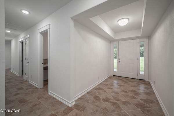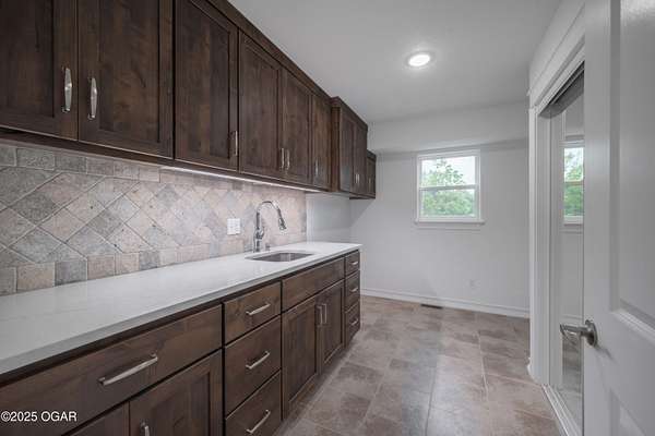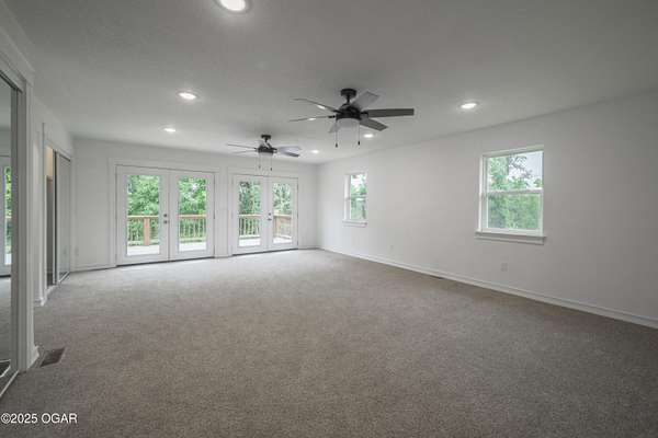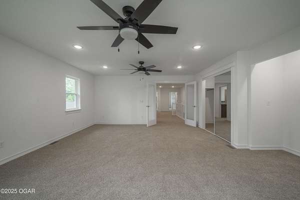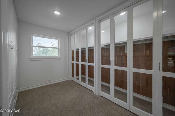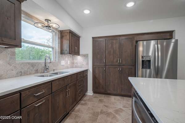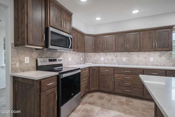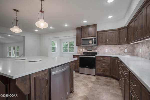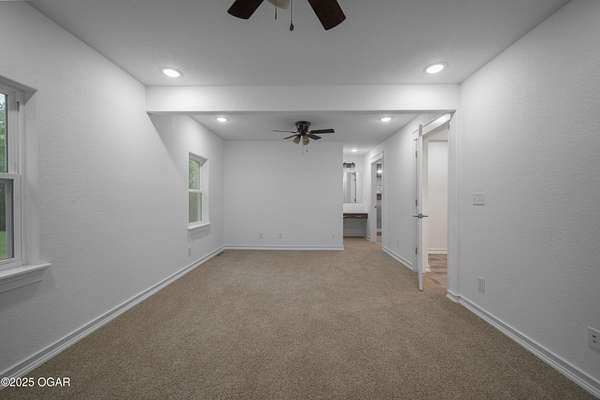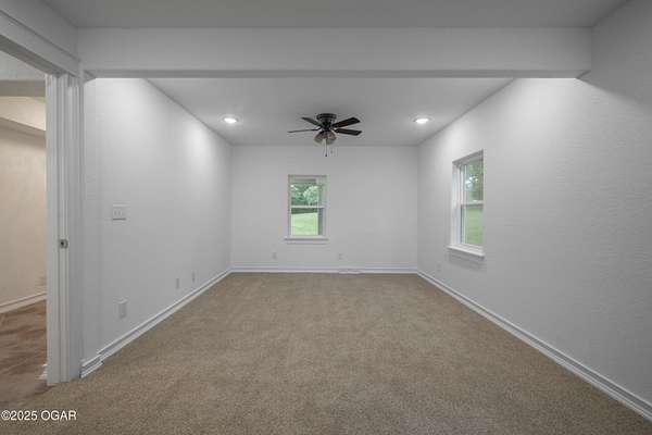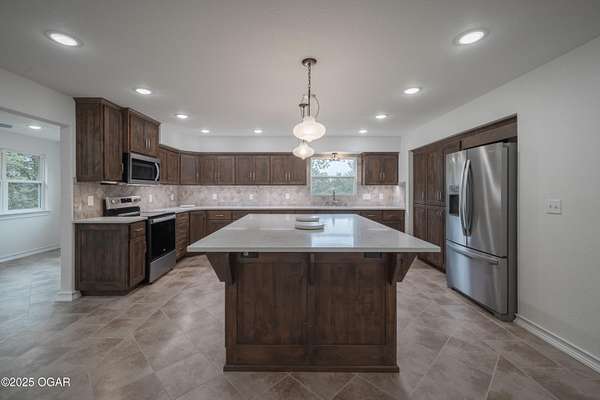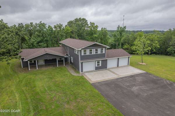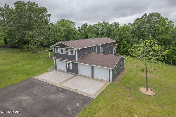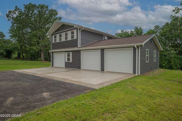 This home has been completely transformed with a new roof, guttering, windows, vinyl siding, fresh interior with new flooring throughout, and a brand-new HVAC system. Custom cabinets by Twin Oaks in the new kitchen with granite counters and an island that could be a continent it's so large, all bathroooms completely remodeled and all on 8 acres! Enjoy the convenience of dual primary bedrooms - one located on the main floor and another on the second level - perfect for multi-generational living, guests, or private retreats. Three car garage with shop area. So much storage it's heaven. Only 17 minutes to Arkansas. Owner/Agent