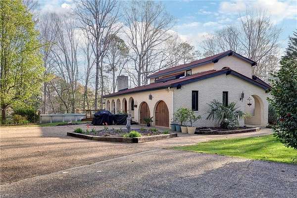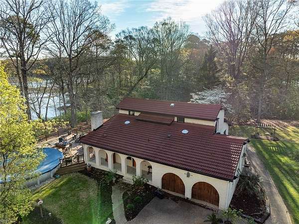 Est $3,931/moPrivately set on four acres along the Pagan River, this exceptional Spanish-style residence offers a level of architectural distinction rarely found in the area. A long, wooded approach opens to a serene waterfront setting where sweeping views and natural beauty define the experience. The elevated deck serves as a stunning backdrop for entertaining or quiet moments overlooking the water. Inside, thoughtfully updated kitchen and bath spaces blend timeless style with modern comfort, while all-new windows invite natural light and frame the surrounding landscape. An above-ground pool enhances the outdoor retreat, creating a space designed for both relaxation and enjoyment. A truly distinctive offering just minutes from local conveniences.