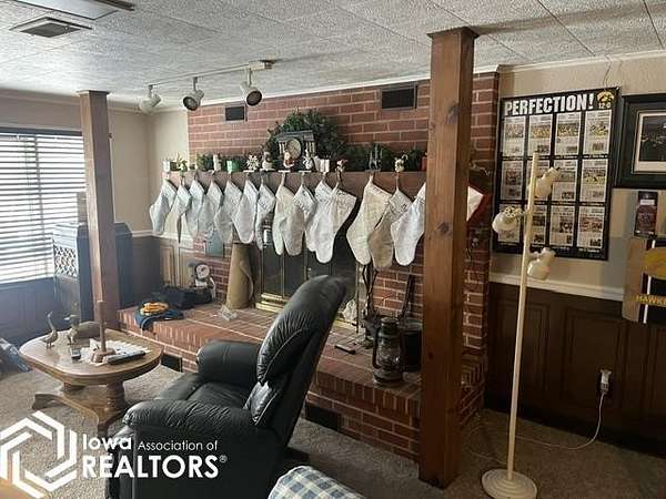 This home is currently listed as a Delayed Showing. Under no circumstances will any showings be allowed until Feb 17th at 1:30pm. The sellers will not accept any proposed purchase agreements before Feb 17th 1:30pm. Beautiful four-bedroom home on nearly five acres of wooded timber, ideally located on a paved road near the sought-after Grove area. This well-maintained property features hardwood floors, exposed wood beam ceilings, and expansive windows that fill the home with natural light while showcasing peaceful timber views. The kitchen offers a sit-up island, sizable pantry, coffee bar/workspace, and freshly painted cabinetry. Bedrooms feature built-in closets and drawers, adding both charm and functionality. The finished basement expands the living space with a large fireplace, bar area, pool table entertainment room - perfect for hosting. Two additional bedrooms and a bathroom provide flexible space for guests, office use, or hobbies. A workshop and generous storage room complete the lower level. Outside, two outbuildings support acreage living with ample room for equipment, storage, or projects. Rare opportunity to own a private timber acreage in sought-after Grove area with the convenience of a paved road - combining space, character, and location in one exceptional property.