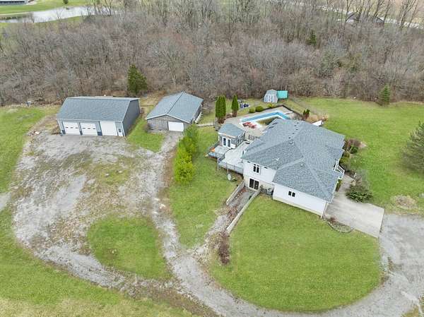 Opportunity awaits with this estate property situated on 5 scenic acres in the just outside the city limits in the Bellefontaine City School District. Featuring 1,822 square feet of living space, this 3-bedroom, 2 full bath home features a functional layout with a dining room, living room with fireplace, eat-in kitchen with island, laundry room, owner's suite with skylights and private bathroom, plus a full, unfinished walk-out basement ready for your vision and expansion. Home has a propane furnace with central air conditioning plus a wood-burning furnace for back up heat. Enjoy the privacy and potential of 5.011 acres, complete with a 32*16 in-ground pool, deck and cabana creating the perfect setting to design your own backyard retreat. Built in 2000, the home includes a 2-car attached garage and is complemented by an impressive array of outbuildings. A 40*48 pole barn with furnace and large overhead doors provides excellent space for equipment, hobbies, or other use, while the additional 40*30 detached garage offers even more storage. Two sheds add extra storage for tools and outdoor needs. This property is being sold as-is and presents a unique opportunity for buyers looking to build equity, invest, or customize a home to their preferences. Bring your ideas and unlock the full potential of this rural property with endless possibilities. Built in 2000, the home includes a 2-car attached garage and is complemented by an impressive array of outbuildings. A 40*48 pole barn with furnace and large overhead doors provides excellent space for equipment, hobbies, or other use, while the additional 40*30 detached garage offers even more storage. Two sheds add extra storage for tools and outdoor needs. This property is being sold as-is and presents a unique opportunity for buyers looking to build equity, invest, or customize a home to their preferences. [Seller is requesting all offers be submitted by Monday, March 30, 2026.]