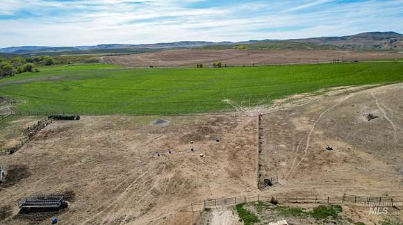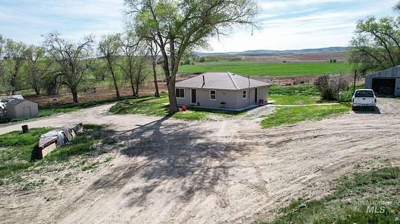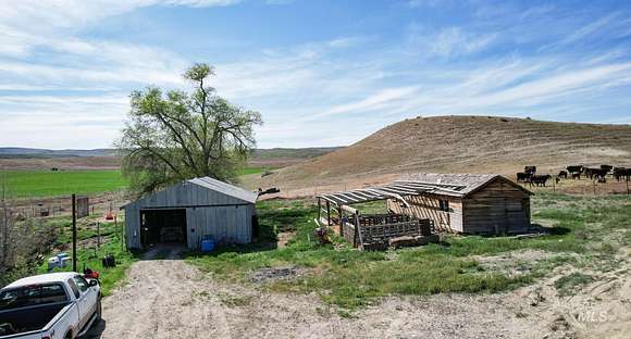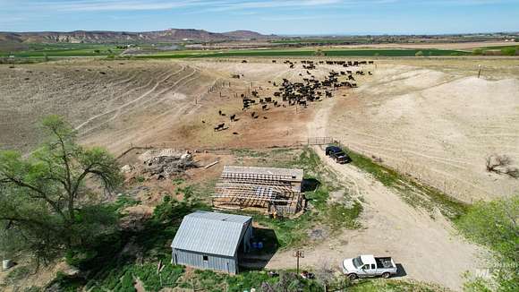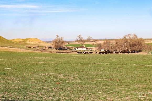 This working cattle ranch covers 126+- acres of varied terrain. That includes irrigated pasture and 62+- acres of dry land suitable for both cultivation and grazing. The ranch boasts an efficient irrigation setup with water rights covering 64+- acres, supported by two gravity-pressurized pivots. Alkali Creek flows year-round, enhancing sub-irrigation and providing ample water for livestock. There are two recently renovated homes offering comfort and breathtaking panoramic views of the Owyhee Mountains. The main house features 3 bedrooms and 1 bathroom, along with a 560 square foot basement. Additionally, there is a mobile home with 3 bedrooms and 2 bathrooms. The property is fully fenced and cross-fenced, complete with corrals, feed bunks, and automatic watering systems designed for up to 130 cows. The owner confirms that the property can sustain 130 head of cattle during winter and 65-70 pairs throughout the rest of the year. Owner carry terms available.