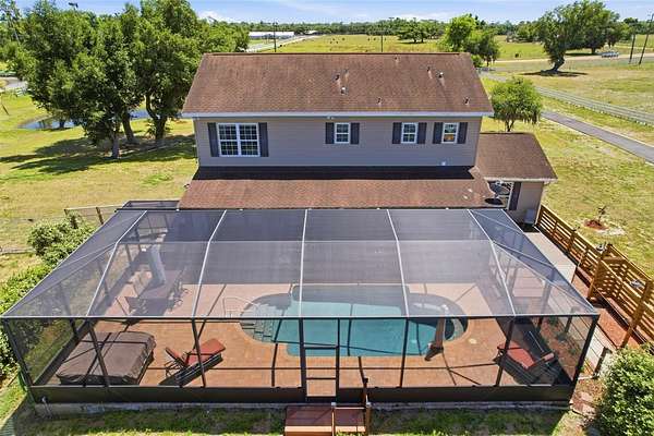 NEARLY 7 ACRES OF PRIVACY, SPACE, AND POSSIBILITY. Rare opportunity to own a private gated estate in Parrish offering room to breathe, privacy, and peaceful surroundings. No HOA. No CDD fees. Enjoy peaceful country living while still being conveniently close to shopping, dining, daily conveniences, and commuter routes. This well-maintained home offers 3 bedrooms, 3 bathrooms, a separate office ideal for remote work or hobbies, and 2,644 square feet of living space with generously sized bedrooms, including two with en suite bathrooms ideal for guests or multigenerational living. Relax on the welcoming front porch overlooking the pond, or enjoy the screened lanai with private pool and spa, perfect for entertaining or unwinding in private surroundings. Pool resurfaced in 2020. Solar heat and pump replaced in 2019. New screening on enclosure. Separate fenced dog pen just off the lanai provides a secure space for pets. Built for both comfort and function, the property includes two oversized garages, one measuring approximately 50.3' x 24' with workshop space and attached 24' x 22' carport, and a second garage measuring approximately 40.2' x 24.4'. Covered parking for up to 10 vehicles. Enjoy the freedom to store boats, RVs, trailers, tools, hobbies, and recreational vehicles on your own property. Major improvements include roof replaced in 2019, two central AC systems with one replaced in 2019 and the other in 2024, mini split added with home addition in 2021, 80-gallon stainless steel water heater replaced in 2020, vinyl siding updated in 2018, electrical panel replaced in 2026, and water treatment system. Fully fenced agricultural-zoned property offers room for animals and flexibility to expand or add structures subject to county approval. Located in Flood Zone X. Serviced by well and septic. Properties offering this combination of acreage, privacy, functionality, and updates rarely become available in today’s market.