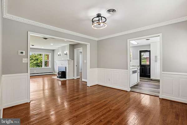 - Carpet, Ceiling Fan(s), Chair Railings, Crown Moldings, Dining Area, Entry Level Bedroom, Island Kitchen, Primary Bath(s), Recessed Lighting, Stall Shower Bathroom, Tub Shower Bathroom, Upgraded Countertops, Walk-In Closet(s), Window Treatments, Wood Floors