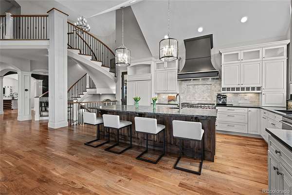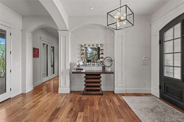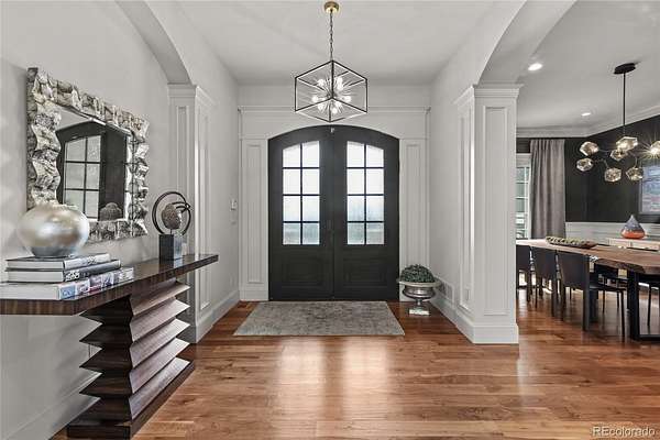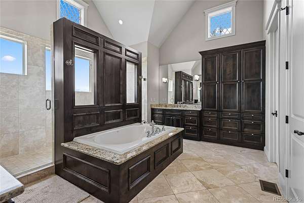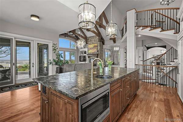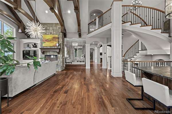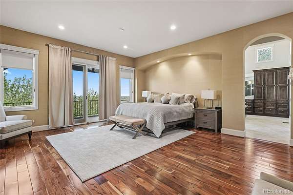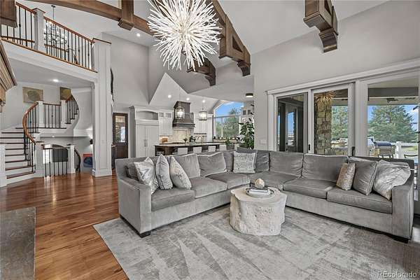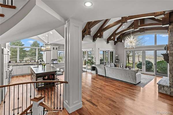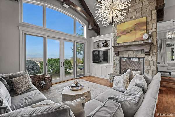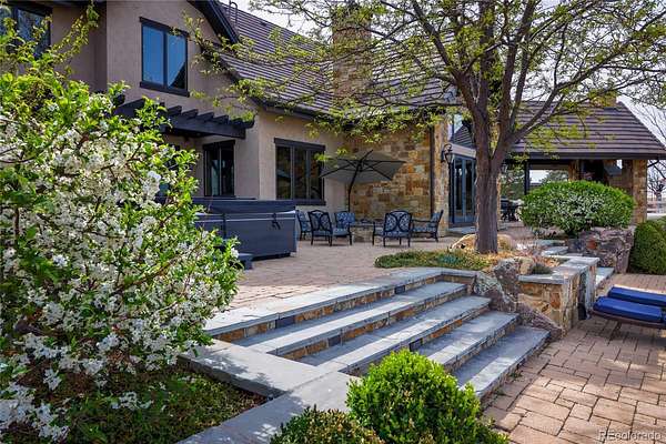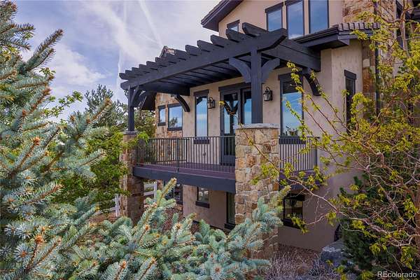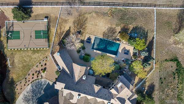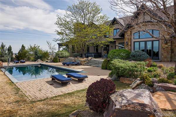 Experience unparalleled luxury where breathtaking, unobstructed mountain views greet you from every turn. Nestled on a premier 2.63-acre homesite within the prestigious Spruce Meadows Estate Community, this masterfully crafted estate offers a rare blend of elegance and tranquility with the flexibility to add an additional accessory building or detached garage. The sprawling grounds are designed for relaxation and active living, featuring a sparkling outdoor pool, a private sports court, and a sprawling backyard sanctuary complete with a covered veranda, outdoor fireplace, built-in grill and cozy gas firepit perfect for crisp Colorado evenings. Inside, the home showcases exceptional craftsmanship with rich woodwork, hardwood floors, and a great room with dramatic vaulted ceiling anchored by massive beams and a floor-to-ceiling rock fireplace. The gourmet chef’s kitchen is a culinary triumph, equipped with top-tier Wolf and Subzero appliances, custom cabinetry, and a sunny breakfast nook that opens to the outdoor pavilion. Retreat to the main-floor primary suite, a private haven featuring a cozy fireplace, a private balcony, and a spa-like bath with soaring ceilings and stunning views. The upper level offers two spacious bedrooms with private en-suite baths, alongside a versatile loft with an adjoining full bath that can easily become a third upstairs bedroom. The walk-out lower level is designed for ultimate recreation, boasting a game room with a full bar, a dedicated media room with theater seating, and a private, spa-like guest suite. Additionally, the property features an oversized four-car garage with a versatile attic space, perfect for a private workout room or home studio. This one-of-a-kind legacy estate pairs flawless finishes with an unmatched Front Range backdrop, commanding a premier position atop one of Broomfield’s highest points.