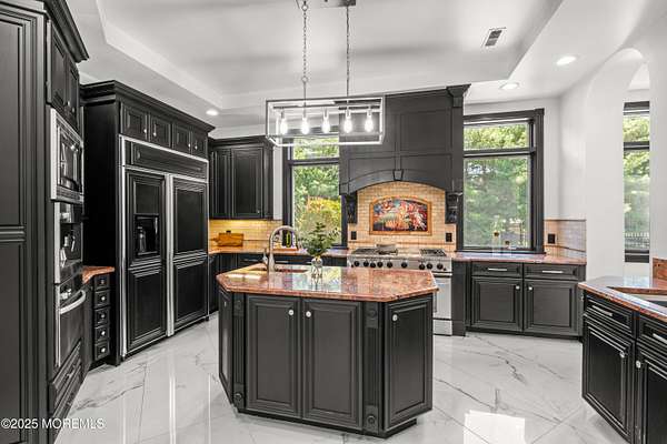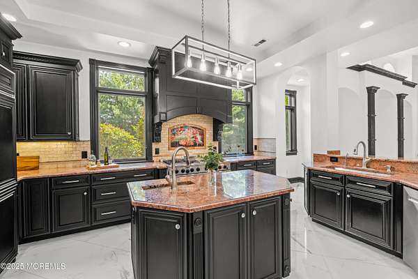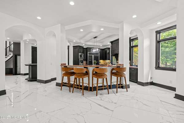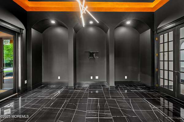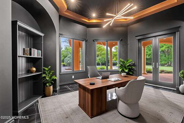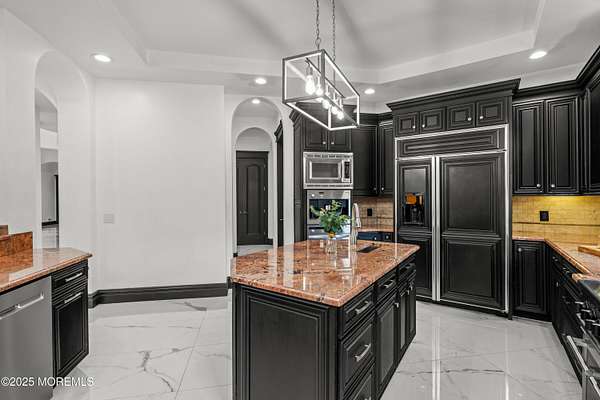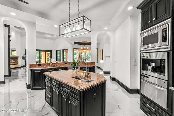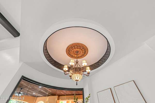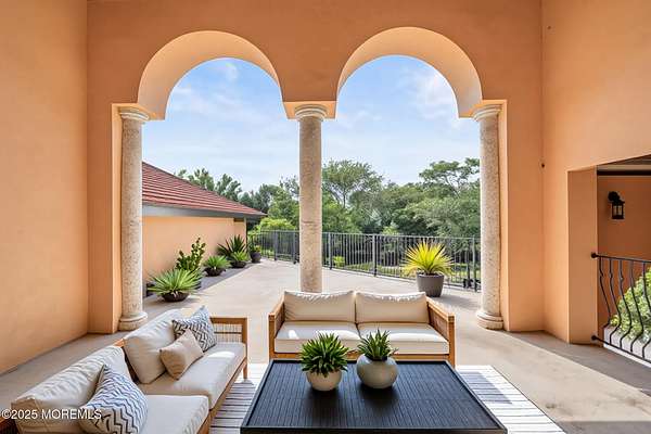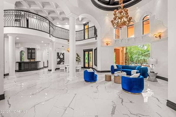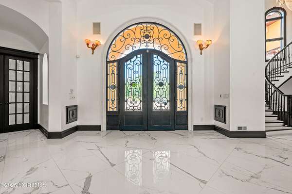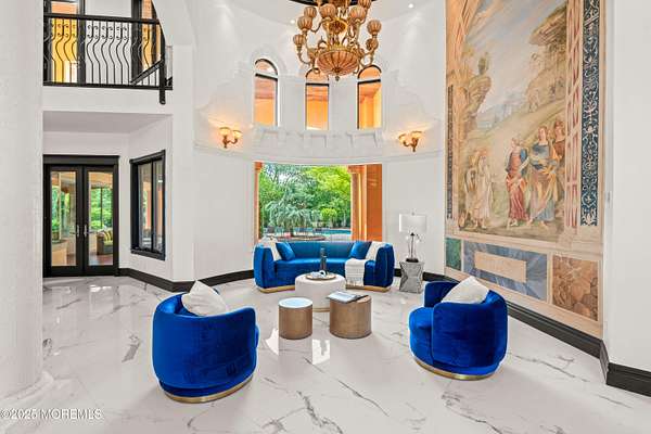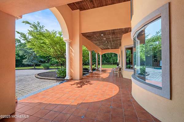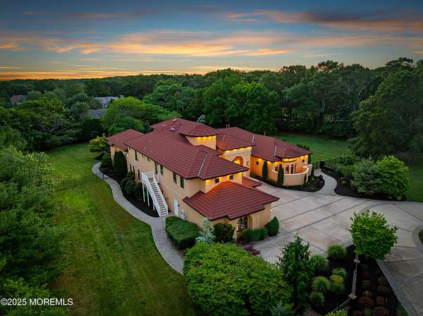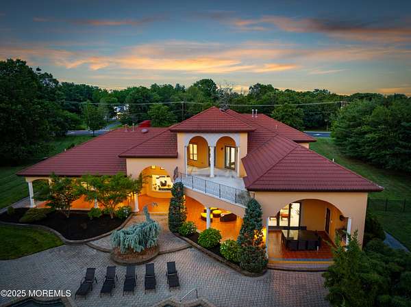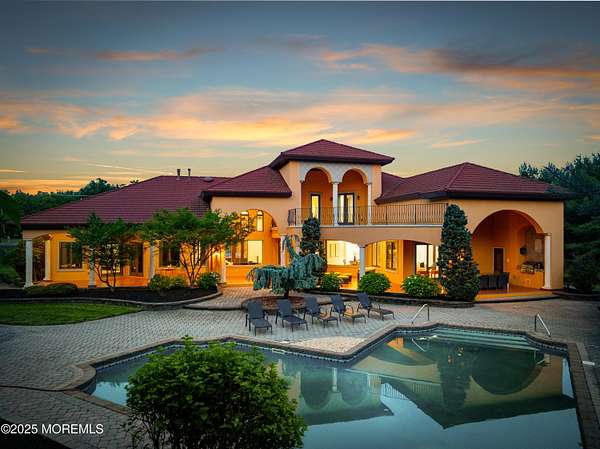 Welcome to one of North Dover's most iconic estate homes - a luxurious Florentino-style residence nestled over 2 acres. Spanning more than 6,500 square feet, this home offers 5 bedrooms, 7 bathrooms, and extraordinary finishes throughout. Every inch of this property exudes refinement, offering a seamless blend of old-world charm and modern sophistication. As you arrive, the gorgeous stucco facade, manicured lawn, and expansive driveway immediately set the tone. The impressive exterior is just a hint of the elegance that awaits beyond the oversized iron double doors. Step into a breathtaking two-story foyer featuring crown molding, gleaming marble floors, elegant wood accents, stately columns, and a Renaissance-inspired mural. The adjacent formal living and dining rooms provide the perfect setting for entertaining. Sparkling chandeliers and a dramatic curved staircase framed by windows that draw the eye upward leading to the balcony which gives you a birds-eye view of the entrance creating a show-stopping entrance. Just beyond, a custom wet bar awaits, complete with mosaic tile backsplash, built-in cabinetry, wine glass rack, and a serving station. The kitchen is a chef's dream, featuring tray ceilings, rich wood cabinetry, granite countertops, a center island, breakfast bar, dual sinks, high-end stainless-steel appliances, and a hidden refrigerator that blends seamlessly into the cabinetry. A large breakfast nook with custom curved window, a walk-in pantry and radiant heat flooring complete this gourmet space. Adjacent to the kitchen is the great room, where exposed beam ceilings, a cozy gas fireplace, custom alcoves, and soaring ceilings create an inviting and grand atmosphere. On the opposite side of the home, you'll find a guest suite with a private bath, a three-car garage, and a stylish half bathroom. On the opposite side of the foyer youll find a large home office with built-ins and a door leading to the oasis backyard. From here you'll find the luxury primary suite. Located in its own private wing, this suite is a true retreat. Enter through a private hallway with a built-in barperfect for your morning coffee. The bedroom features arched built-ins, a gas fireplace with custom lighting, a cozy sitting area, and private access to a covered patio. A hidden bookcase door reveals a secret storage room, while the custom walk-in closet offers abundant built-ins. The spa-inspired ensuite includes a luxurious jacuzzi tub, walk-in shower, dual vanities, and private patio access for the ultimate relaxation experience. Upstairs, each additional bedroom includes its own full bathroom, offering comfort and privacy for family and guests. From the balcony, step onto an outdoor terrace that overlooks the backyard and the inground pool. Continue through to the entertainment lounge, which leads to the private home theater complete with staggered seating for an authentic cinematic experience. The outdoor living space completes this estate with a true resort-style feel. Framed by vibrant landscaping and mature trees, the expansive 1,400-square-foot covered patio offers comfort and convenience with a fully equipped outdoor kitchen, built-in surround sound system, and private outdoor half bath. At the heart of the backyard, the in ground pool serves as the centerpiece creating the perfect setting for both relaxation and entertainment. This is more than just a home; it's a lifestyle defined by luxury, privacy, and architectural grandeur. Your dream home awaits and it's ready to impress. Welcome to your forever estate.