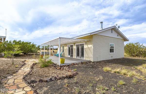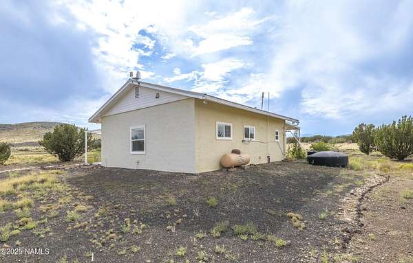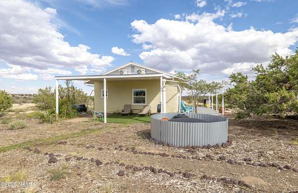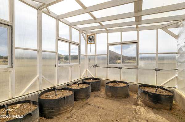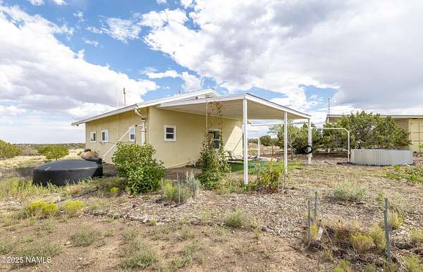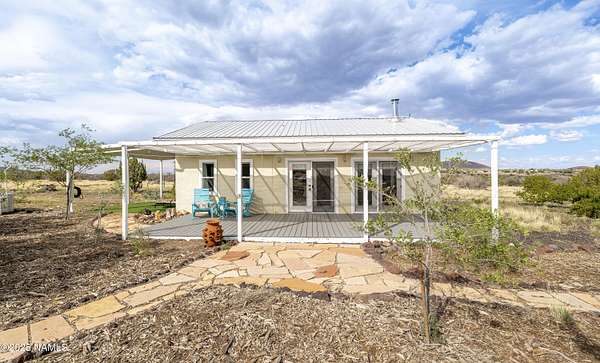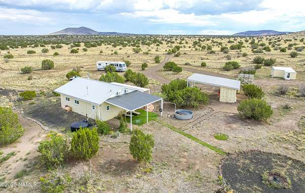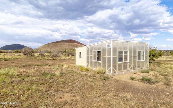 Private 10-acre off-grid retreat with panoramic Painted Desert, Cinder Hills, and San Francisco Peaks views. Fully fenced with an automatic gate, peach & shade trees, and a 1.25-mile walking path. The 854 sq ft masonry home features 1 bed, 1 bath, 10-ft ceilings, wood floors, a wood stove, 2 Wi-Fi mini splits, a modern kitchen & bathroom, and an updated solar system (2024). Includes Trex deck, a covered front & side porch, and 7,000-gal rainwater storage. Outbuildings include a 4-season greenhouse, a storage container with a 2-car carport, a woodshed, and an RV pad with power. Quiet, scenic, and perfect for animals, this retreat is located off a side road with undeveloped land on 2 sides. High-speed internet is available. Live off the grid without giving up comfort! Move-in ready!