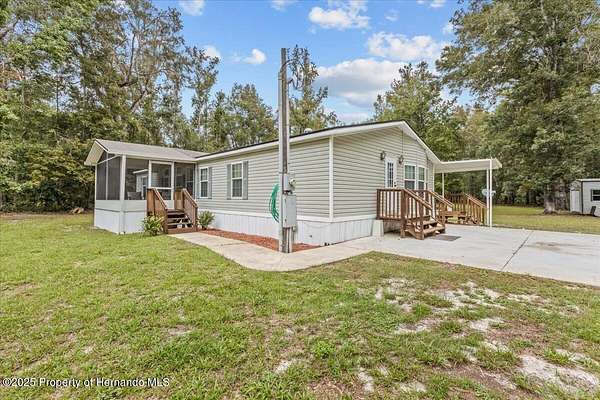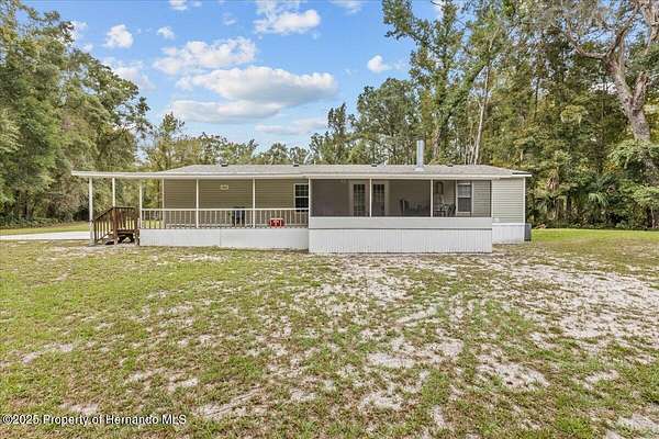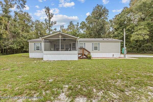 This roomy 3/2 home on a cleared 2.7 acres is in a secluded area and peaceful! Comes furnished, has a NEW ROOF, a fireplace, and the washer/dryer comes with the home! 2 Sheds and a large cement slab for car/RV parking next to the home. A screened-in front AND back porch to enjoy your coffee in the morning and cocktails in the evening! With 2.7 acres, there's plenty of room for your animals! Just a few miles off US 19, you'll be very close to shopping and restaurants!