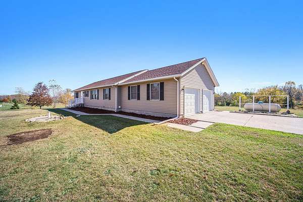 Set back off a quiet country road, this beautifully updated ranch offers 9.61 acres of peaceful privacy and natural charm. The home is move-in ready, featuring brand new flooring and fresh paint throughout, along with recent upgrades including a new water heater and garage doors installed in 2025. You'll also find a new microwave, dishwasher, and a whole-house generator for added convenience and peace of mind. The property boasts a stunning setting with a creek meandering through the back, perfect for relaxing or exploring. A walk-out basement provides excellent potential for additional living space, just waiting for your finishing touches. Whether you're seeking a serene retreat or a place to grow, this ranch delivers comfort, beauty, and room to roam.