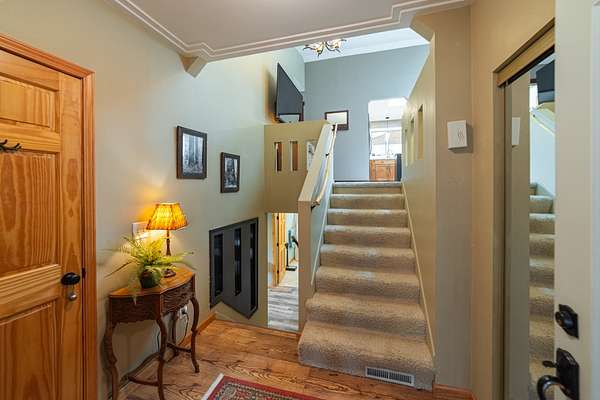 Ditch the city and bring your business home to this ultimate mechanic's retreat, featuring a massive 2,500 sq. ft. 3-door heated shop with running water on a peaceful 4.5-acre corner lot. Perfectly situated near the historic Stillwater Lift Bridge and St. Croix River boat landing, this property offers a fully updated, sky-lit home with SmartSide siding, new flooring throughout, two remodeled bathrooms, and a high-end kitchen with alder cabinetry, quartz countertops, and a quiet-close island. The primary suite features a private balcony, while the exterior provides a move-in-ready sanctuary including a covered deck where you can relax under the ceiling fan and watch the abundant local wildlife. The established grounds are a hobbyist's dream, boasting several perennial gardens and an orchard of apple and plum trees alongside large, fenced-in raised beds featuring an asparagus patch, rhubarb, and a variety of berries. This is a rare opportunity to own a professional-grade workspace and a self-sustaining private retreat all in one.
