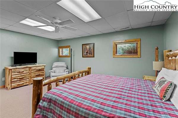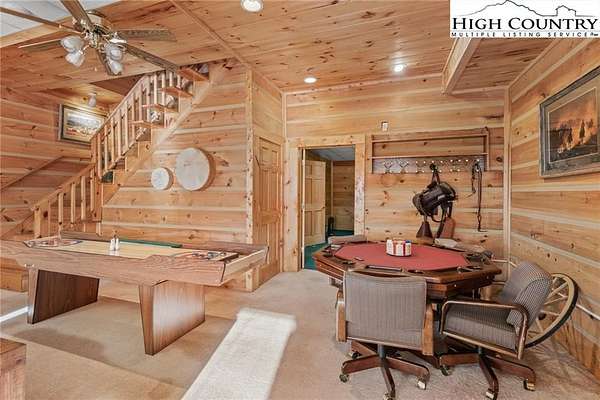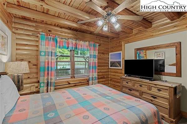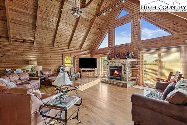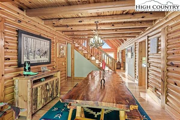 Large TURN KEY Log Cabin Lodge on 7.8 acres of land with a separate 1 bedroom + bunk room guest house. 6 Sleeping areas can accommodate 14+! Direct view of Sugar Mountain Ski slopes and long range view. Magical property with soaring ceilings in the over size living room. Cook large holiday meals in the large fully equipped chefs kitchen with granite and stainless appliances. Double wall ovens (1 convection). Island and with propane cook top & hood. Eat in kitchen with table and bar seating. A separate formal dining area. Primary King bedroom on the main level has large bath with dual sinks and huge walk-in 2 head shower. 2 more bedrooms on main level and 2nd full bath with dual sinks and tub/.shower. Pool table in the loft overlooking the living room. Large deck with hot tub to take in the amazing views. Downstairs is a large living space and game room with 3 more sleeping areas including a bunk room. Full bath with shower. Fire pit to enjoy those evening bonfires. The red barn was converted to a pristine 1 bedroom apartment plus bunk room with its own firepit. Sleeps 4. Storage shed. This estate is located in a prime location just a few short minutes to Sugar Mountain Ski slopes. 2 supermarkets & pharmacies and Downtown Banner Elk with numerous restaurants. Also a short drive to Beech Mountain, Boone, Blowing Rock, Watauga Lake and Linville Gorge. Almost 8 acres of land that could be sold off as lots or used for privacy and hiking. House sleeps like a 6 bedroom with a 3 bedroom septic permit. Barn/guest house has its own septic. Guest house long term rented at $1,800 per month