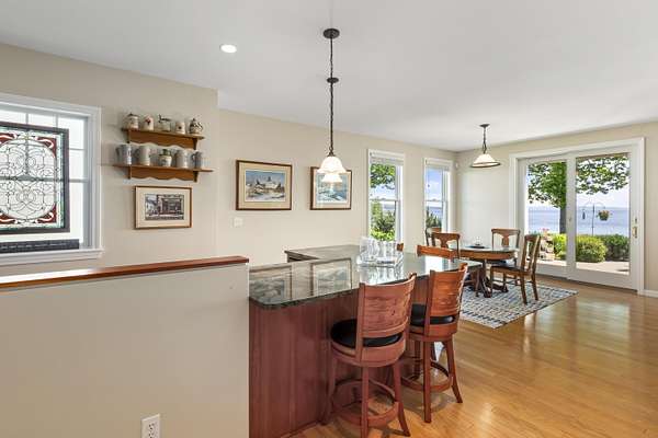 Nestled along the scenic coast of Belfast, this well-maintained 5-bedroom, 3.5-bath waterfront home offers spacious living, sweeping views, and the ease of a stand-alone residence within a quiet residential condominium community -complete with a deep-water dock for boating and kayaking on Penobscot Bay. Designed with flexibility and comfort in mind, the main level allows for true one-floor living with a sun-filled open layout, well-appointed kitchen, laundry, half bath, and a serene primary suite opening onto the deck. The generous water-facing deck extends the living space outdoors, ideal for entertaining or peaceful morning coffee. Upstairs are two additional bedrooms and a full bath - one of which lends itself perfectly to a bunk room, office, studio, or media room. The lower level offers a fantastic in-law or guest setup, with two bedrooms, full bath, spacious great room with kitchen, and easy walk-out access to a private patio and the beautifully landscaped grounds. Central air-conditioning keeps hot weather at bay, and the living room gas fireplace makes cooler days feel cozy. Sweeping ocean views grace nearly every room, and thoughtful touches throughout offer comfort, light, and versatility. Plenty of storage on each level and an oversized 2-car heated garage accommodates modern lifestyles with ease. Little to no work is required to maintain this beautiful property, thanks to the condominium association amenities. Furnishings could convey for an easy, turnkey move. Close to downtown Belfast for shopping, dining, and entertainment, only a short drive to Lincolnville Beach, Camden, and the Camden Hills State Park for hiking/biking trails. With its blend of privacy, coastal beauty, and community amenities, this is an exceptional opportunity to enjoy year-round living or seasonal retreat in one of mid-coast Maine's most desirable locations.