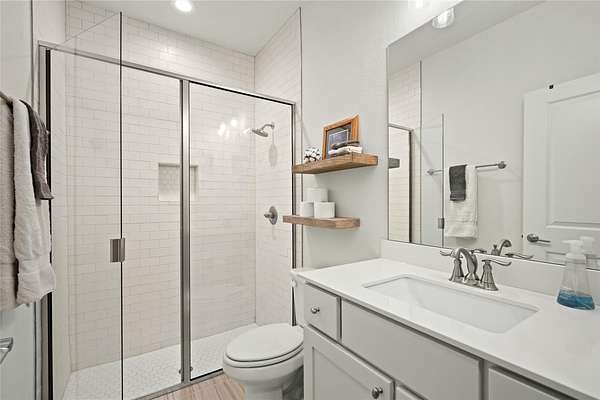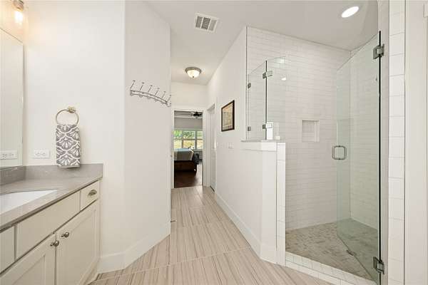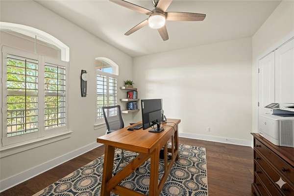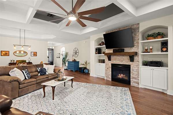 - Bookcases, Breakfast Bar, Built-In Features, Ceiling Fan(s), Ceiling-High, Coffered Ceiling(s), Double Vanity, Eat-In Kitchen, High Speed Internet, Kitchen Island, Multiple Dining Areas, Multiple Living Areas, Open Floorplan, Pantry, Primary Bedroom On Main, Quartz Counters, Recessed Lighting, Smart Home, Smart Thermostat, Soaking Tub, Two Primary Closets, Wired For Sound