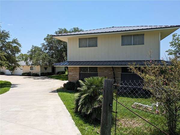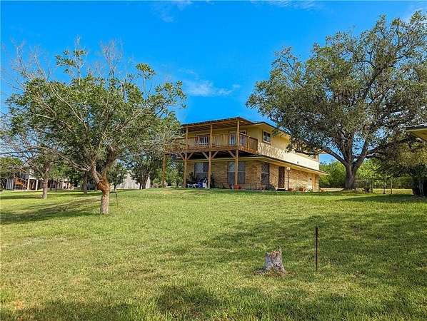 Extremely rare find available and nestled along a slough of the Nueces River, this 3 acre property offers scenic views over looking the valleys and hills of the Nueces river and stunning sunsets. This home home has tons of room for all your toys( boats, RV's, Golf Carts, Etc.) The main house features 4 Bedrooms 2 upstairs along with the kitchen and the living room that looks out onto the newly installed deck on the upper floor. Then 2 bedrooms downstairs with a second living area as well as an attached one car garage with tons of storage. Then there is a detached 2 car garage with more storage and work benches and another 2 bedrooms and full bath adding an additional 420 sq ft of living space for over 2000 sq feet of living space. Large concrete pull through driveway and lower patio is perfect for entertaining friends and family. Wild life include deer, javelinas, and turkey that frequent the backyard. When water levels are up enjoy access to the river on you boat from your own backyard pier. You must see to appreciate! Besides the great location of this home there are some additional features like new windows upstairs, metal roof, the deck and pull through driveway are all more recent updates to the home. This home is awaiting a new owner to come and make it their perfect country retreat.