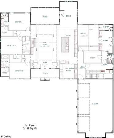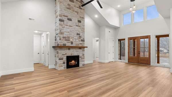- Ceiling Fan, Ceilings-Cathedral/Raised, Ceilings-Smooth, Ceilings-Some 9 FT +, Countertops-Solid Surface, Fireplace, Gas Logs, Open Floor Plan, Pot Filler Faucet, Utility Sink, Walk in Closet, Walk-In Pantry