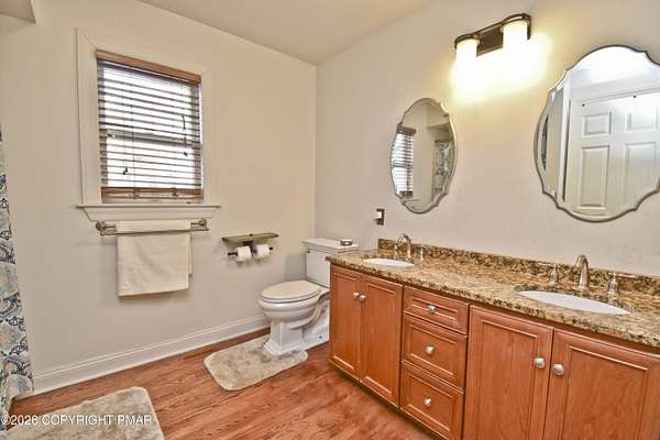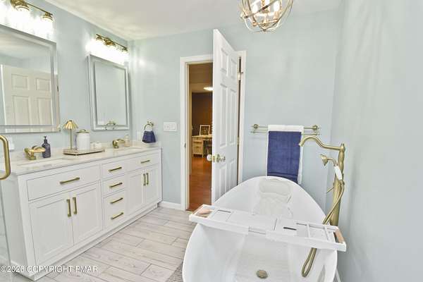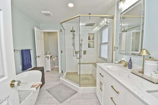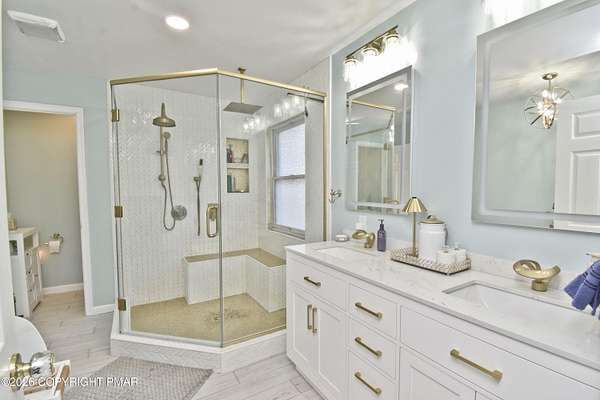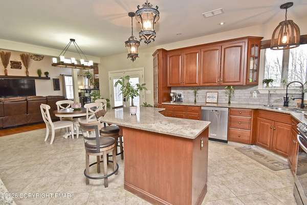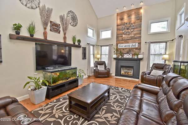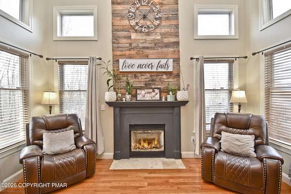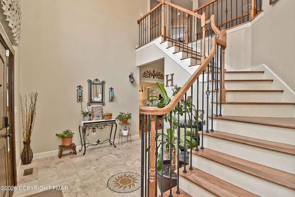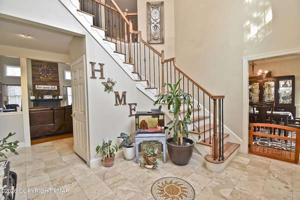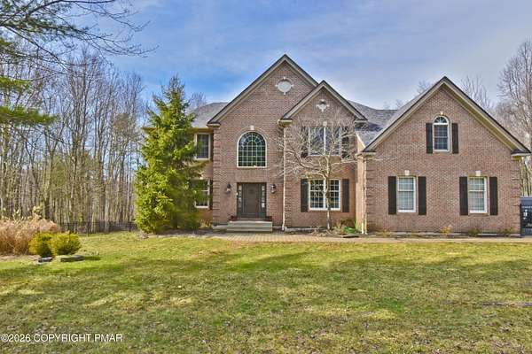 A TRULY EXCEPTIONAL STATELY 4bd 2.5ba BRICK Colonial in the Fox Chase community! Set on OVER 2 private acres, this home offers the space & presence you've been waiting for w/ over 3300 sqft of beautifully finished living space. The impressive 2-story foyer opens to Formal Living & Dining Rooms, perfect for hosting holidays & gatherings. The heart of the home is the STUNNING Great Room w/ cath ceilings & a cozy gas fireplace, flowing into the Eat-in Kitchen w/ custom cabinetry, granite countertops/island, & SS appliances, ideal for entertaining or everyday living. The main level also includes an office, half bath, & laundry. Upstairs features a LUXURIOUS Primary Suite w/ a MASSIVE WALK-IN CLOSET & A BRAND NEW SPA-LIKE BATH w/ a 2-person walk-in shower & soaking tub, along w/ 3 additional spacious bds. The full WALKOUT BASEMENT adds versatile space w/ room to expand. Enjoy outdoor living on the BRAND NEW 40x34 Trex deck & extended patio, perfect for relaxing or entertaining. Additional highlights include a 3-car garage, FENCED IN YARD, NEWER HVAC (2017), & BRAND NEW roof w/ solar panels. Located just mins to Downtown, Rt 80, shopping, dining, wineries, & top Pocono attractions like Shawnee, Camelback, & the Delaware Water Gap...offering the perfect balance of privacy & convenience.