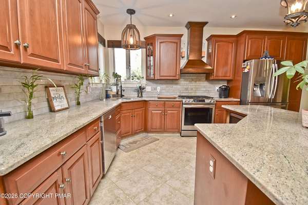 - Dishwasher, Gas Oven, Gas Range, Microwave, Oven, Range Hood, Refrigerator, Stainless Steel Appliance(s), Water Heater