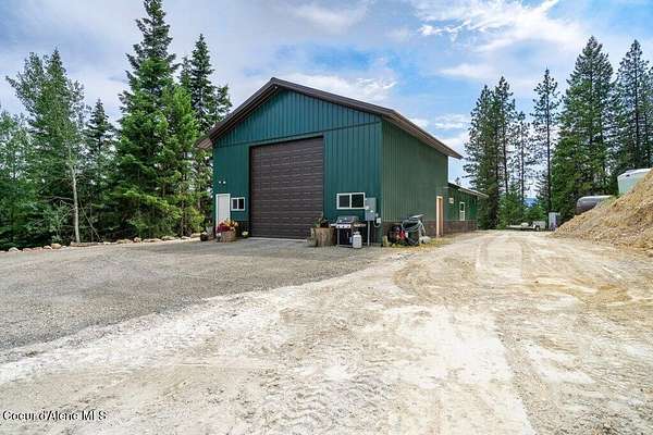 Nestled on 9.23 wooded acres, this private retreat offers the ideal balance of seclusion and practicality. The 900 sq ft shop home features a spacious bedroom, one and a half bathrooms, and an open-concept living area designed for comfort and versatility. Whether used as a weekend getaway, guest quarters, or a home base for exploring North Idaho, this thoughtfully crafted space emphasizes efficiency and ease of living. Surrounded by mature trees and natural beauty, the property provides ample opportunities for expansion, gardening, or simply unwinding in peace and quiet. Perfect for those seeking a private escape or a flexible property with acreage, this Kingston gem combines privacy, functionality, and endless potential.