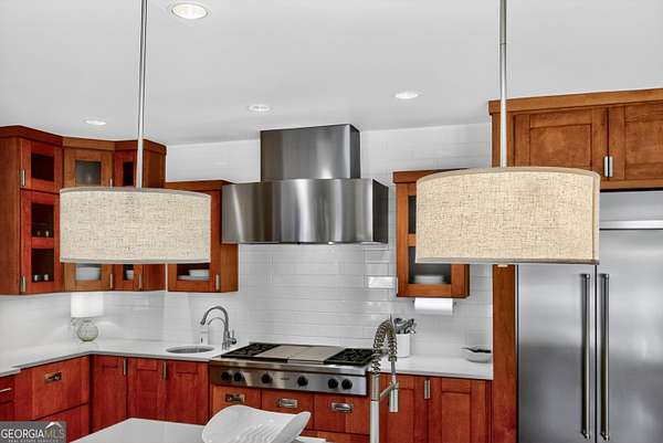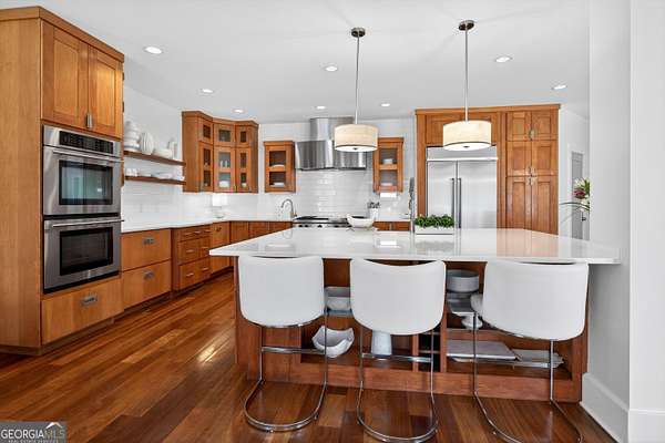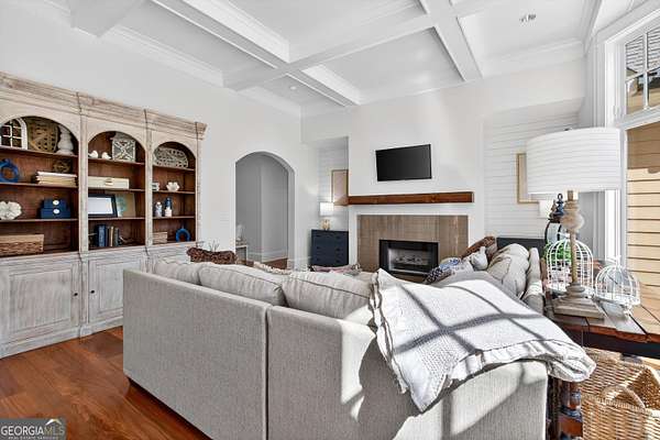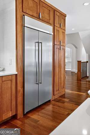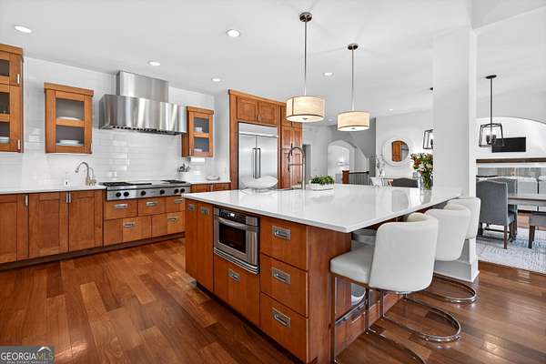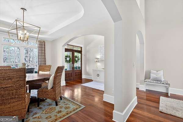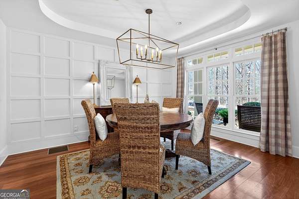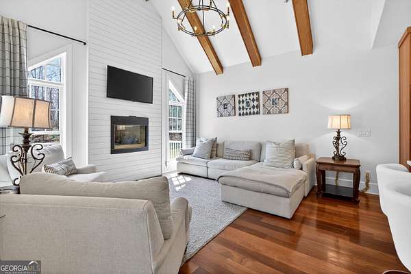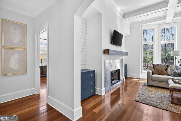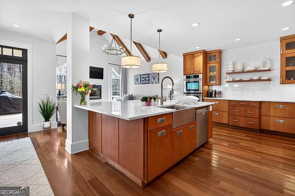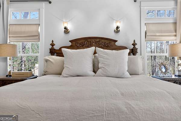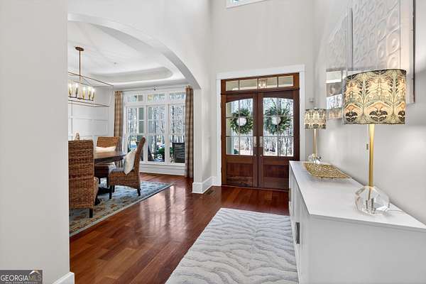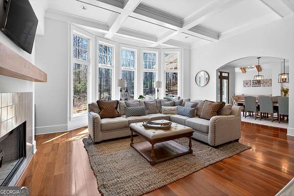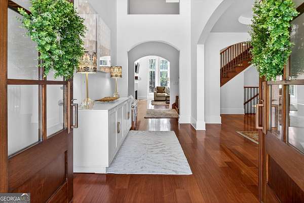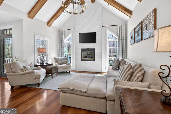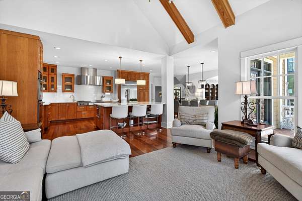 Looking to move to your dream home? This is a must see beautifully upgraded and thoughtfully renovated luxury home offering 5 bedrooms and 4.5 baths, perfectly blending timeless elegance with modern convenience and QUALITY. From the lovely front double door entry into the two-story foyer, you can appreciate the attention to detail, refined finishes, and inviting spaces designed for both everyday living and entertaining. The main level showcases a formal dining room and a stunning great room centered around an eye-catching cozy fireplace flanked by two customizable inset areas. The chef's kitchen is truly the heart of the home, featuring gorgeous custom wood cabinetry, open shelving, a premium Wolf gas cooktop complete with griddle and grill, custom vent hood, double ovens, built-in refrigerator, and an oversized extended center island with pendant lighting and a built-in microwave. A stylish tiled backsplash completes this exceptional space. Function meets style in the spacious laundry/mudroom, conveniently located off the garage, complete with a commercial-grade stainless steel sink and designer wallpaper. Just off the kitchen, the keeping room offers a warm and inviting retreat with a wood-beamed vaulted ceiling and its own fireplace. A guest bath is also located on the main level for added convenience. The naturally light-filled primary suite on the main level is a true sanctuary, featuring a graciously sized bedroom with an inset ceiling and private access to the spa-inspired ensuite bath. Enjoy a custom glass shower, soaking tub, dual vanities with abundant white cabinetry and beautifully designed sink bowls. The primary closet offers ample space and is finished with hardwood flooring. Upstairs, you'll find three additional bedrooms and two full baths, including one bedroom with an attached bonus room-perfect for a playroom, study, or additional living space. A spacious loft area overlooks the two-story foyer and is ideal for a home office or flexible living space. The terrace level expands the home's versatility, offering a full bathroom, an additional bedroom with access to the courtyard, and a second family room perfect for game days and gatherings. This level also includes a refreshment area, private office, home gym space, and abundant storage, along with a dedicated golf cart garage for added convenience. Outdoor living is just as impressive, with an oversized deck overlooking a private, wooded 1.9-acre lot-perfect for relaxing or entertaining. The garage features a clean, neutral finished floor, and the home is equipped with premium extras including exceptional hardwood flooring, an irrigation system, NEW roof just installed, reverse osmosis water system, casement windows, EV Level 2 charger outlet, and French drains. Residents of Horsemen's Run enjoy exceptional community amenities, including three parks, a large central gathering space with gazebo and walking paths, tennis courts, swimming pool, and organized social events. Conveniently located just minutes from Peachtree City and Fayetteville, you'll have easy access to dining, shopping, and everyday conveniences. Situated within the highly sought-after Sara Harp Minter Elementary, Whitewater Middle, and Whitewater High School District. This home truly offers luxury living at its finest-thoughtfully designed, beautifully appointed, and ready to welcome you home!
