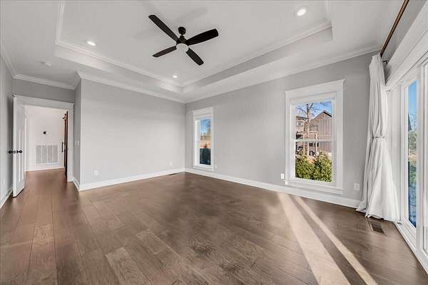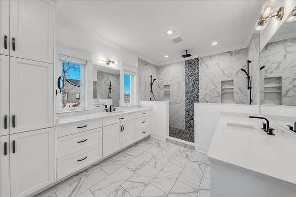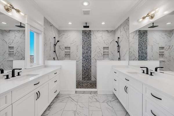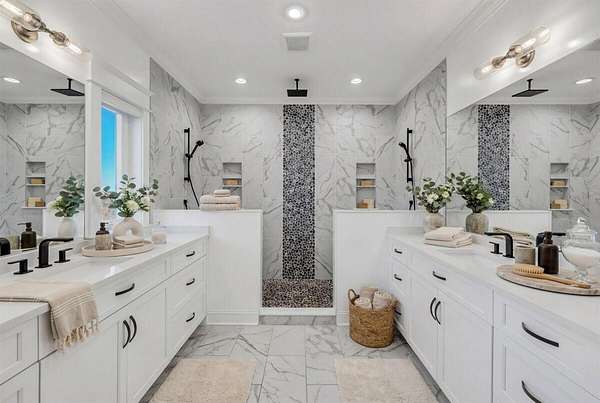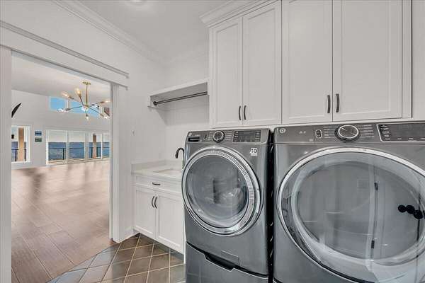 Throughout the home, advanced systems and thoughtful enhancements elevate the living experience, including five HVAC zones, a dedicated safe room, a tankless water heater, and a Moen Flo smart water monitoring system. A smart driveway alert system seamlessly integrates with the home's security, providing both convenience and peace of mind.