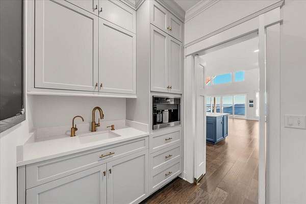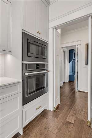 Thoughtfully designed to balance grand-scale entertaining with effortless everyday living, this five-bedroom, four-and-a-half-bath residence offers a seamless flow of beautifully curated spaces. The gourmet kitchen is a statement of both form and function, featuring panel-ready appliances by Sub-Zero, Café, and Asko, a professional-grade gas range with double ovens, striking Dekton surfaces, and bespoke soft-close cabinetry. Just beyond, a spacious walk-in pantry serves as both a functional extension and a hidden luxury, complete with a built-in Miele coffee system and instant hot water.