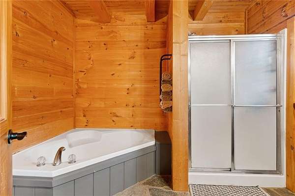 Discover the perfect blend of privacy, charm , and modern comfort in this beautiful "CUSTOM BUILT LOG CABIN CHALET", nestled on 5.32 wooded acres, just minutes from downtown JASPER The Moment you arrive, you will fall in love with the peaceful surroundings and timeless character of this home. Inside, you will find a warm, open concept living space featuring a STUNNING STONE and CONCRETE FLOORS, a cozy wood burning fireplace and classic log-cabin details that create a true mountain retreat feel. The home offers 2 Bedrooms and 2 Baths ideal for a primary residense, weekend getaway, or investment property. Would also be a wonderful AirBNB.