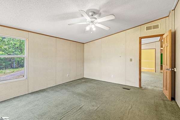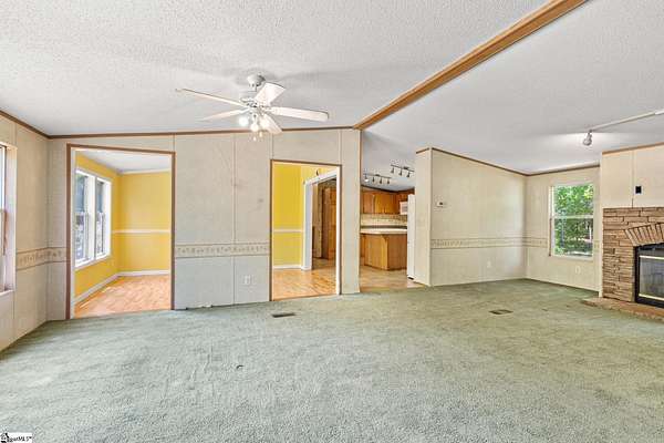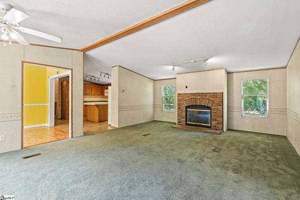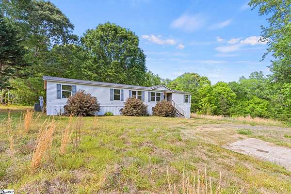 INVESTMENT OPPORTUNITY in Woodruff - Located at the end of a quiet road, 155 Shanel Drive sits on 4.8 acres with a mix of open space and woods, plus two creeks running through the property. The 2002 Clayton double wide offers approximately 2,000 square feet with 4 bedrooms and 2 bathrooms. Inside, the home has a comfortable feel with a spacious layout, including a large great room with a fireplace. The primary suite features a generously sized bathroom with a skylight and double walk-in closets. The home is livable, but it does need cosmetic updates. It’s a good fit for an investor or someone looking for a project with some upside. The home has not been de-titled, so it will require a cash purchase. No HOA, plenty of land, and a quiet setting - this one has a lot of potential! Call before it's gone! The Carolina Home Team at EXP Realty 864-547-1181