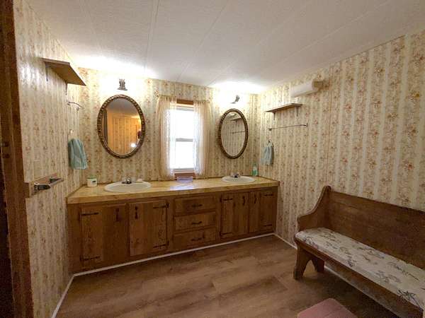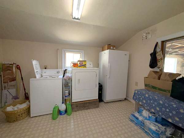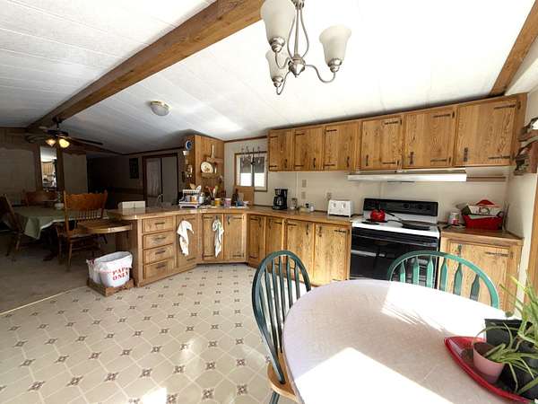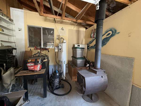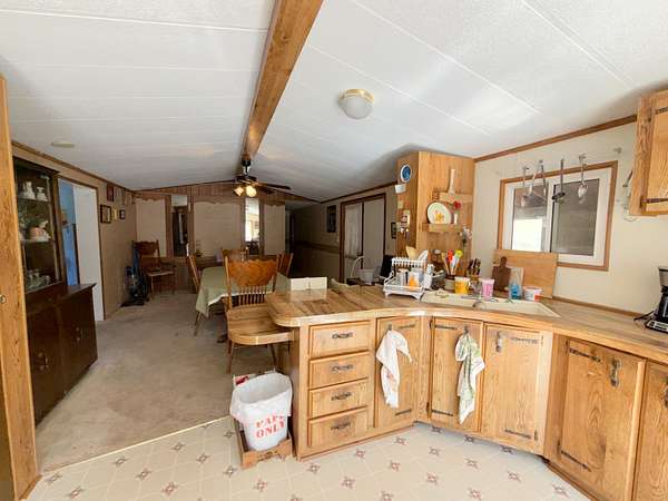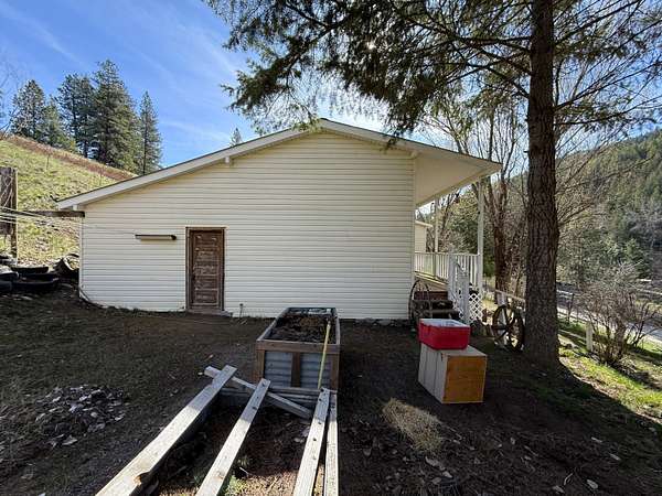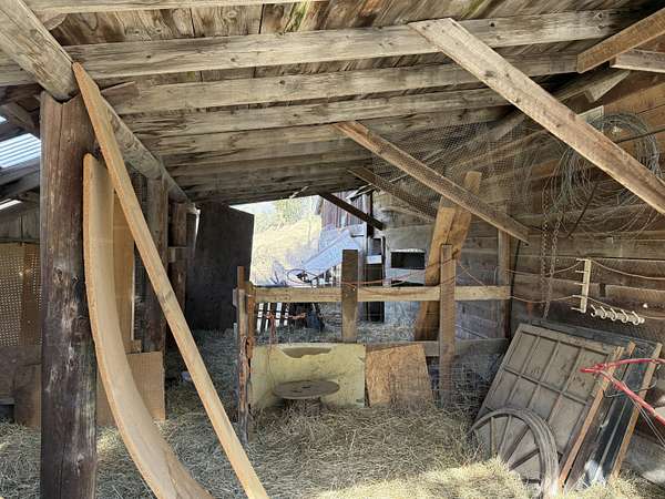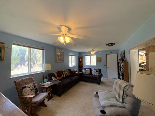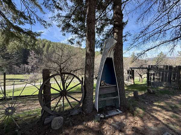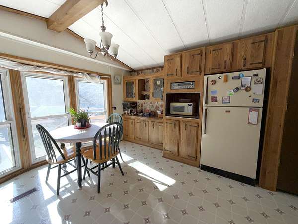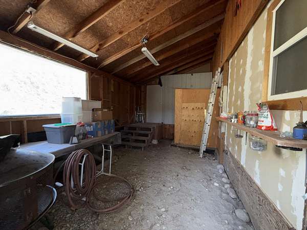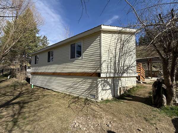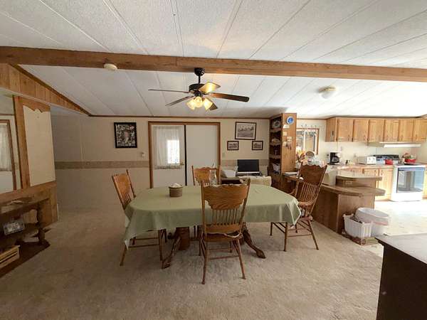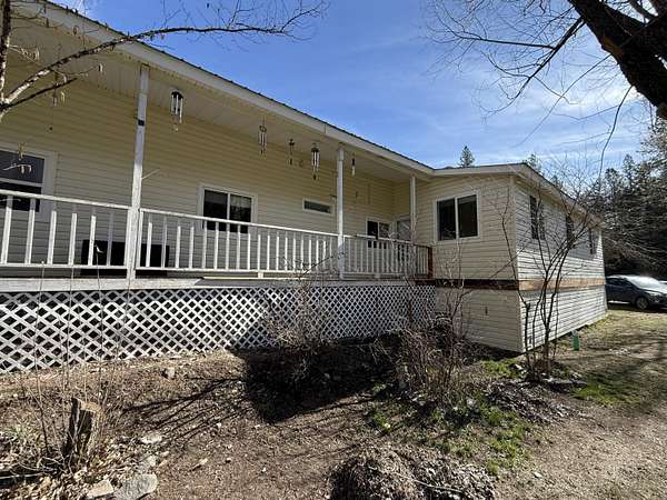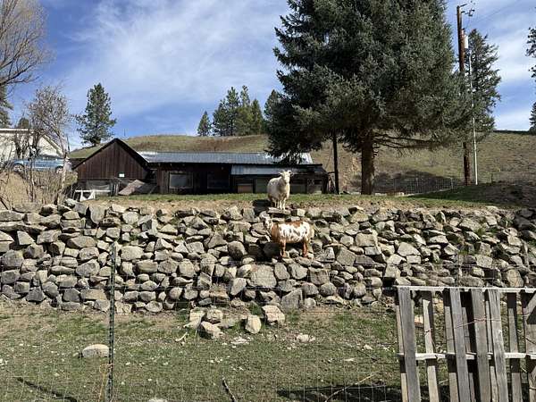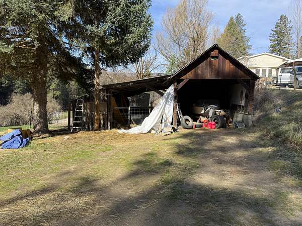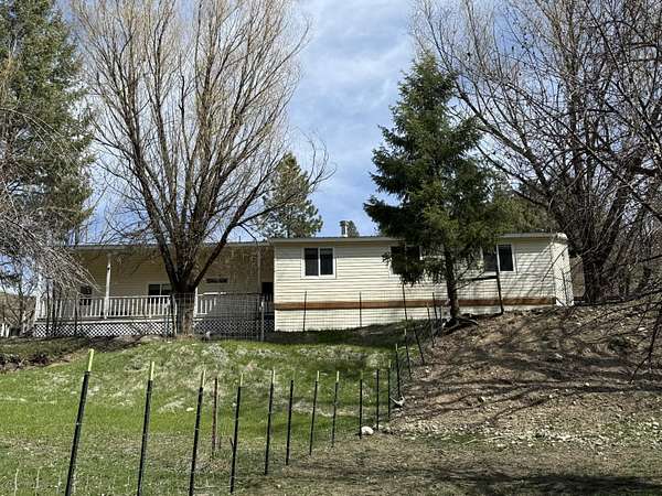 Very well kept home on acreage set up for animals & easy year-round access off a county maintained gravel road.The home is a mid-80s single wide with quality additions on both sides, creating a comfortable one-level layout. Vinyl siding and a metal roof keep maintenance low, & the covered porch is a great spot to take in the setting. Inside you'll find a large open kitchen & a home that has clearly been well cared for. Forced air heat in the home & a wood stove in the garage for additional utility. The property is fully fenced, ready for livestock with cross fencing & a barn that includes an attached garage, plus a detached carport & additional covered parking up at the house. There's a rustic cabin previously used as a bunkhouse. Nicely established yard & garden with lots of rock work
