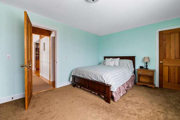 Custom-built Timberpeg post-and-beam home set on 5.02 acres with expansive long-range mountain views visible from all three levels of living space. This 3-bedroom, 3.5-bath home features a living room with a 2-story stone fireplace, cathedral ceilings, and a wall of windows designed to capture the surrounding landscape. The eat-in kitchen includes Corian countertops, a kitchen island, stainless steel appliances and a walk-in pantry. Separate formal dining room is a plus. Beautiful 1st-floor primary bedroom with cathedral ceiling, an en-suite bath with separate whirlpool tub and shower, deck access, and skylights. An office/study, laundry room, and half bath complete the first floor. The upper level includes a media room in the finished attic space, a family room, two bedrooms with walk-in closets, and two full bathrooms. A small library alcove overlooks the living room below, adding additional flexible space. The lower level walkout offers an exercise or game room, storage room, and a utility room with additional storage capacity. Numerous windows throughout the home provide natural light and take advantage of the mountain views. An attached three-car garage with direct entry includes a dedicated workspace area.