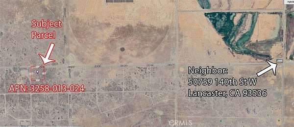 Please go directly to the property by using the neighbor's address, 50759 140th St W, Lancaster, CA 93536, then by using the following coordinates: 34.797045065076105, -118.40812688040126