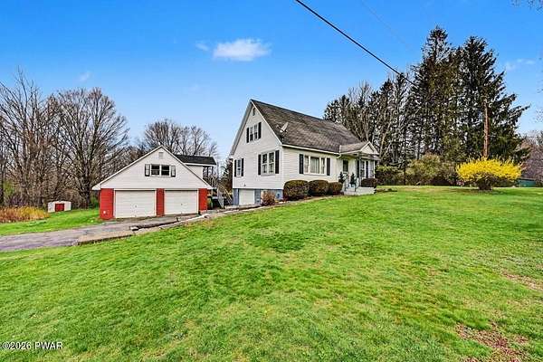 Charming Cape Cod-style home set on 5.43 beautiful, level acres with a little slope offering privacy and space to enjoy the outdoors. This well-maintained property features 3 bedrooms and 1.5 baths, with a functional layout perfect for comfortable everyday living. The home includes a spacious two-car detached garage with additional storage above--ideal for hobbies, equipment, or extra workspace--along with a one-car garage in the basement for added convenience. Enjoy the open, usable land perfect for gardening, recreation, or simply relaxing in a peaceful setting. A wonderful opportunity to own a versatile property with plenty of room to grow!
